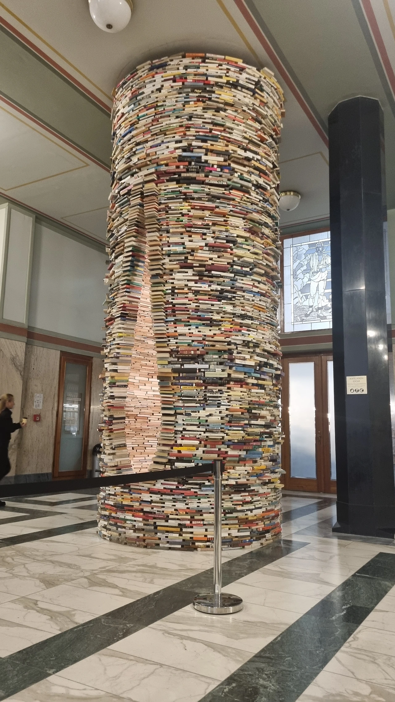 다음 행선지는 시립도서관이다. 보존을 위해 들어가 볼 수 없는 도서관 말고 진짜 프라하 시민들이 이용하는 곳에 가보자! 도서관 앞에 길다란 줄이 늘어서서 무슨 일인가 봐써니 입구에 있는 책으로 만든 탑에서 인증사진을 찍으려고 줄 선 거였다.
