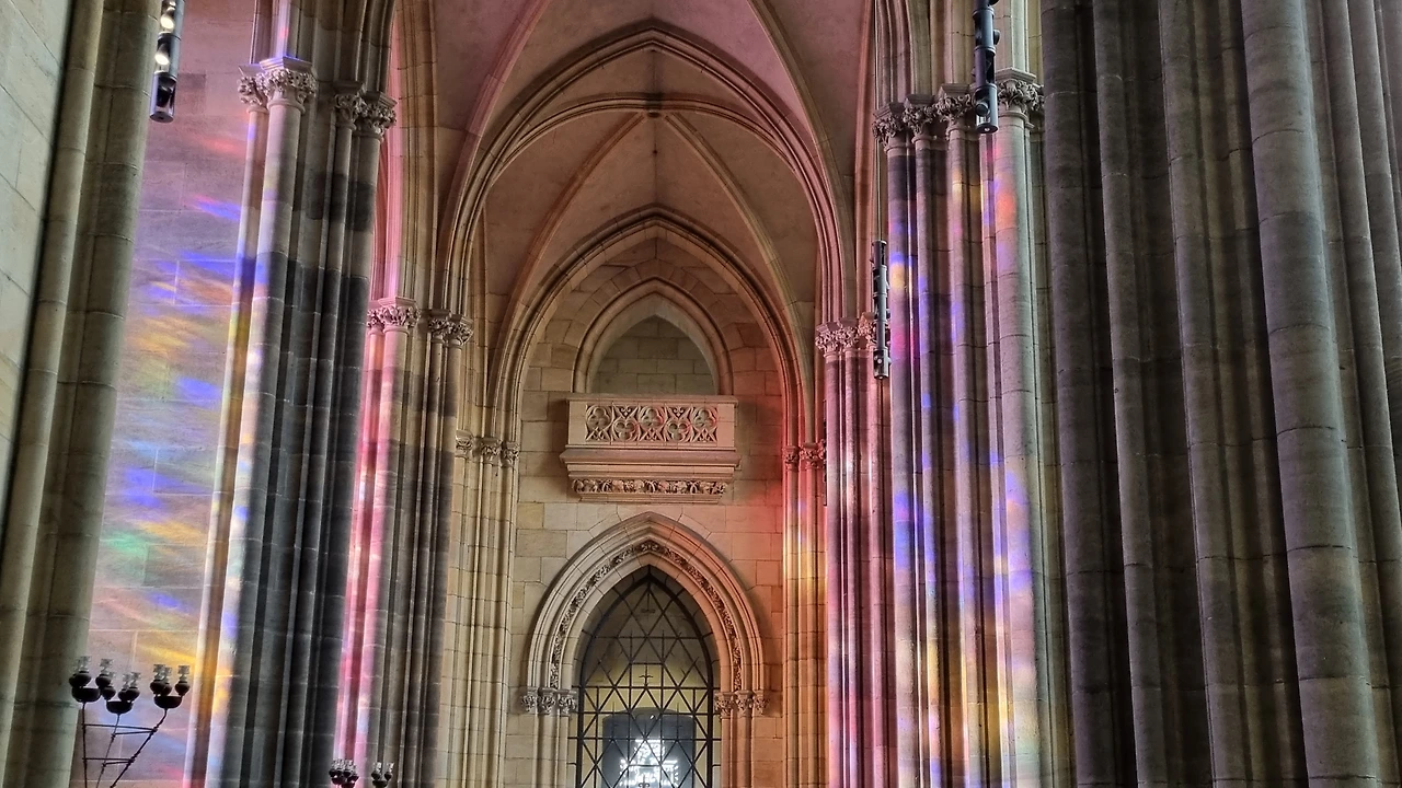 성당 내부에 빛의 색깔이 물든다.