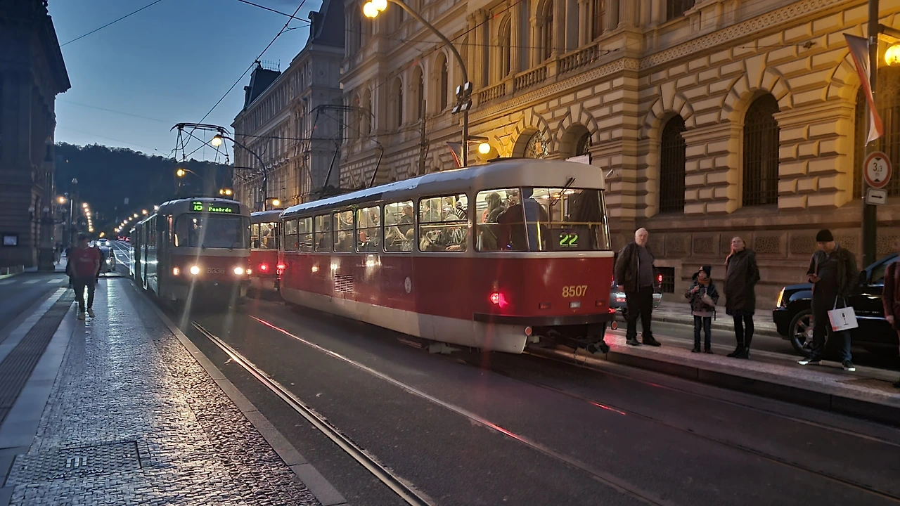 든든해진 날 태운 트램은 계속해서 언덕 위로 올라간다. 와! 노란색으로 물든 키큰 나무들의 터널을 지나 프라하성 입구에 내리는데 너무 황홀했다. 어떤 예술보다도 계절에 따라 자연의 색을 바꾸시는 하나님의 섭리가 가장 큰 울림을 준다. 프라하 단풍 놀이의 시작! 빨간 트램과 만나면 매력이 배가 되는 풍경을 마음껏 찍었다.