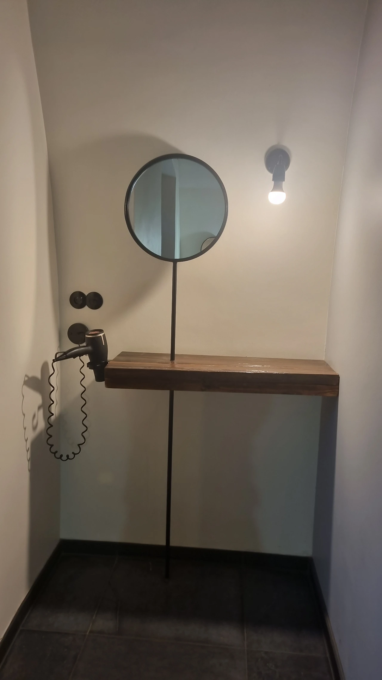이렇게 수건과 옷, 샤워도구를 걸어놓고 올려둘 곳이 많아야 편리하다! / 하지만 저 거울은 서양인 평균키 기준인지 까치발을 들어야 내 얼굴이 거울에 보였다 ㅠ