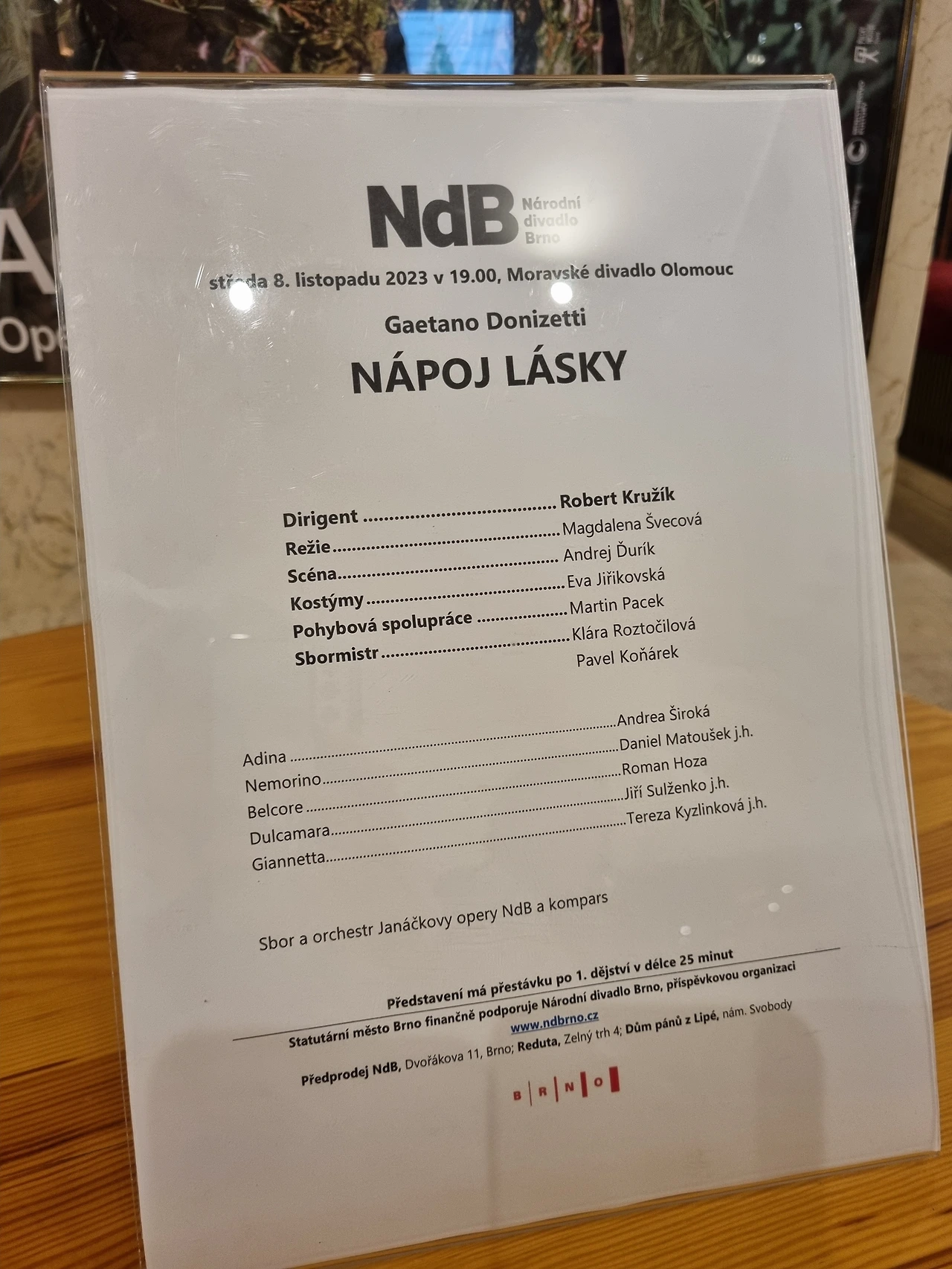 어느덧 해는 저물고, 낮에 구경다니다가 광장에 있던 모랍스키 극장에서 오늘 밤 오페라를 공연한다는 광고를봤다. 인터넷으로 홈페이지에 들어가봤더니 3만원도 안 되는 가격에 도니체티의 오페라 "사랑의 묘약"을 볼 수 있다고. 거기다가 연주하는 교향악단이 브르노 시립 교향악단이다. 다음 이동할 도시가 브르노인데! 이것은 꼭 보라는 운명이라고 생각했다.