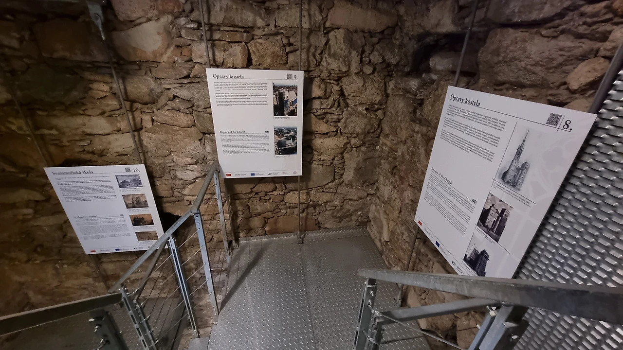 내려가는 계단 곳곳에 성당 역사에 대한 내용이 안내되어 있었다.