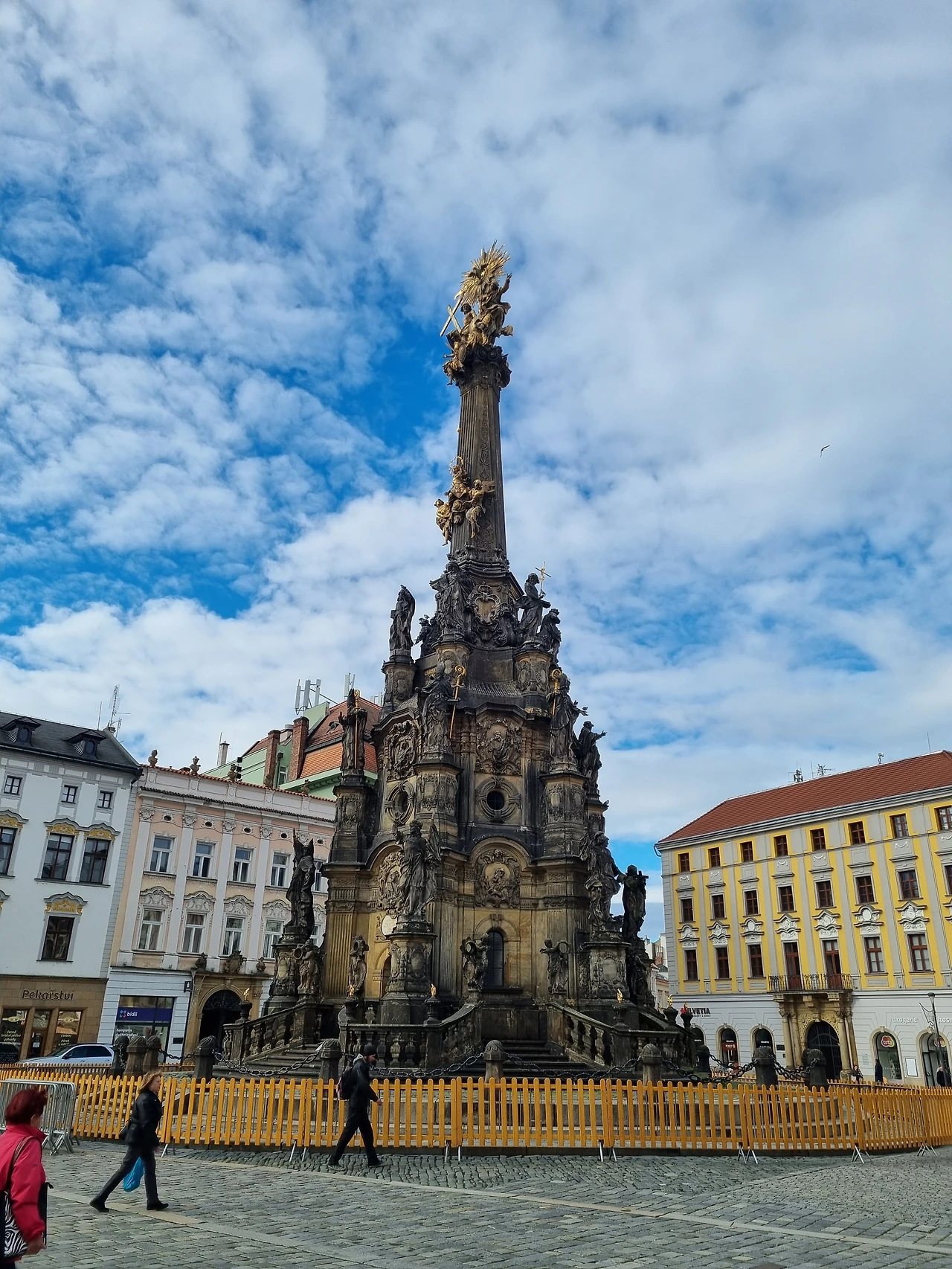 빨래를 마치고 숙소에 갖다놓은 뒤 본격적인 중심지 광장으로 나가봤다. 12월에 있을 크리스마스 마켓을 준비하느라 한창 공사중이고 약간 어수선한 분위기. 광장 가운데에는 흑사병을 잘 이겨내게 해준 것을 기념해 세워진 삼위일체 동상이 있었다.