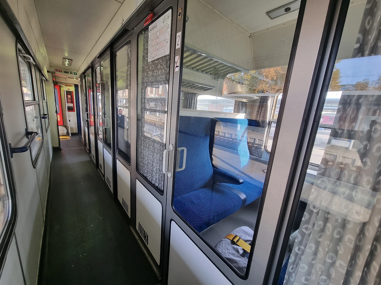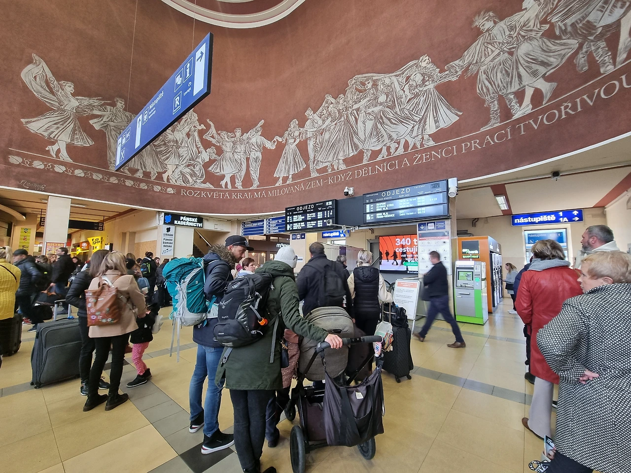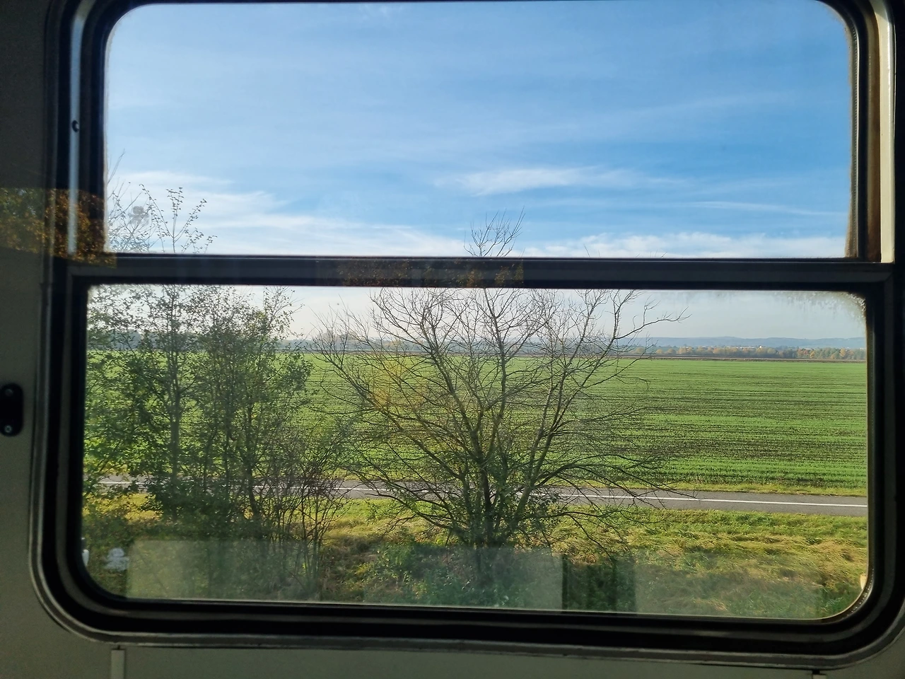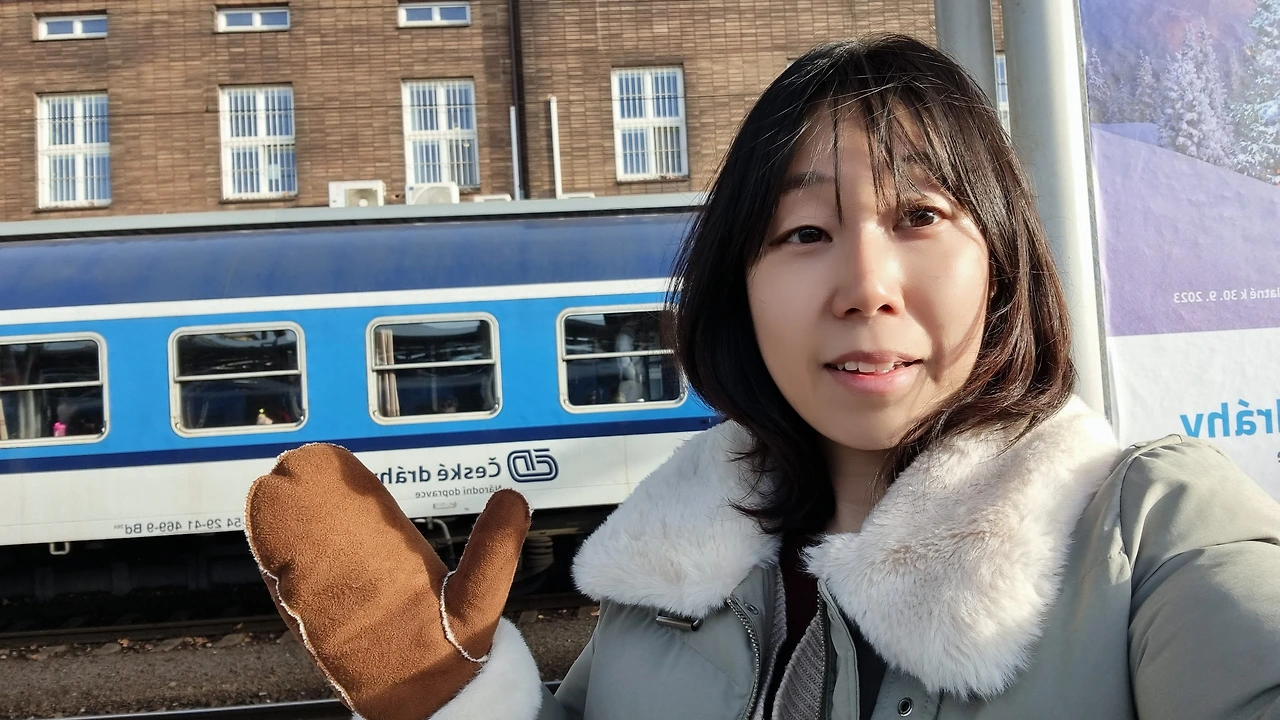 올로모우츠 역에 이틀 전 왔을 때는 몰랐는데 역 내부 벽화가 귀엽다. 오늘 내가 탈 기차는 '체스키 드라히'라고 발음하는 체코 국영 철도청의 기차다. 영화에 나오는 것처럼 칸칸이 나눠져 있어서 어떤 사람들과 한 칸을 쓸지, 내 짐 놔둘 곳은 있을지 여러 걱정 보따리를 안고 기차를 탔는데 내가 탄 칸에는 아주머니 한 분만 계셨다. 그래서 여전히 너무 높은 선반에는 캐리어를 못 올리고 발 밑에 둘 자리 여유가 충분했다. 아주머니는 인사만 하시고는 조용히 독서를 즐기셨다. 나도 고요한 가운데 기차 진동과 창밖 풍경을 구경하면서 1시간을 보냈다.