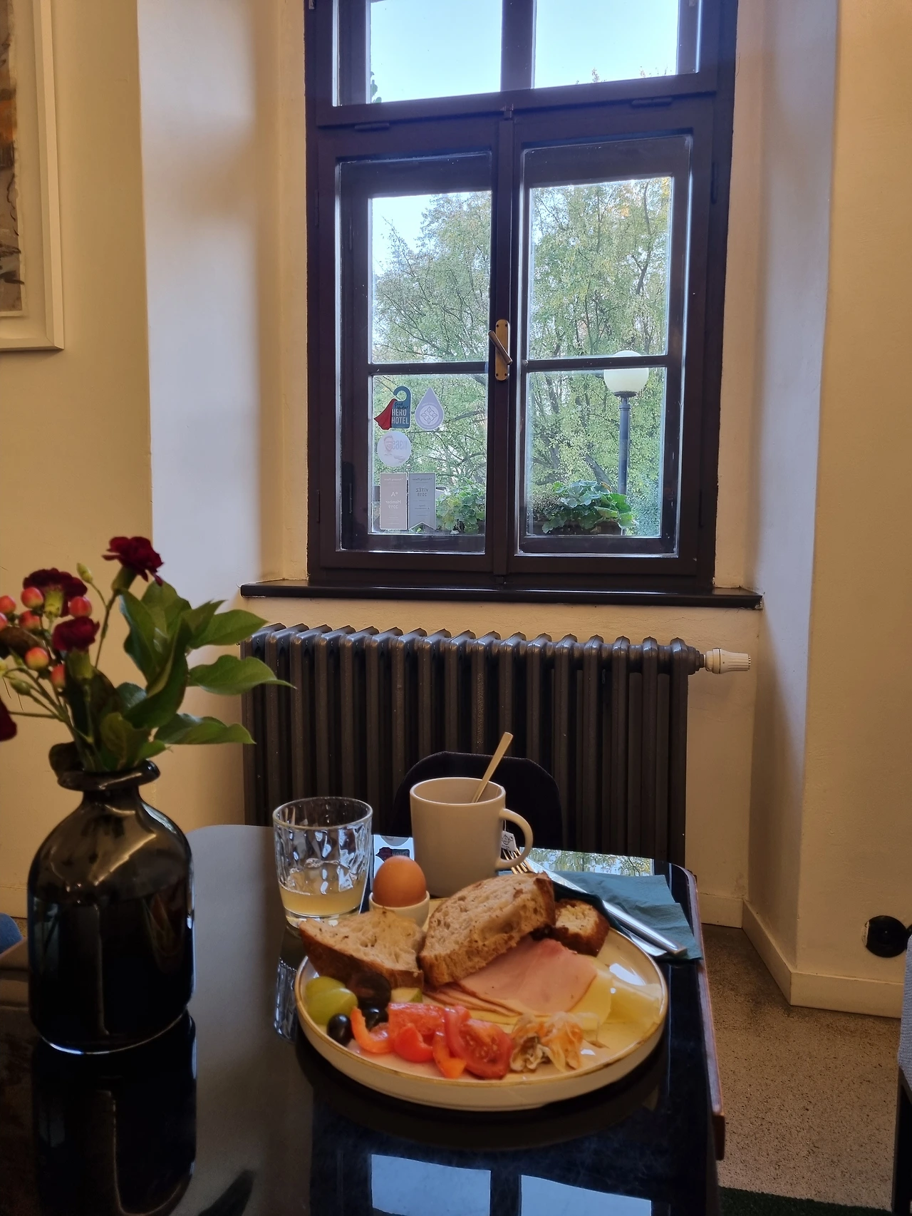 숙소 카페 창가에 앉으면 한 눈에 기차와 트램을 다 볼 수 있다.