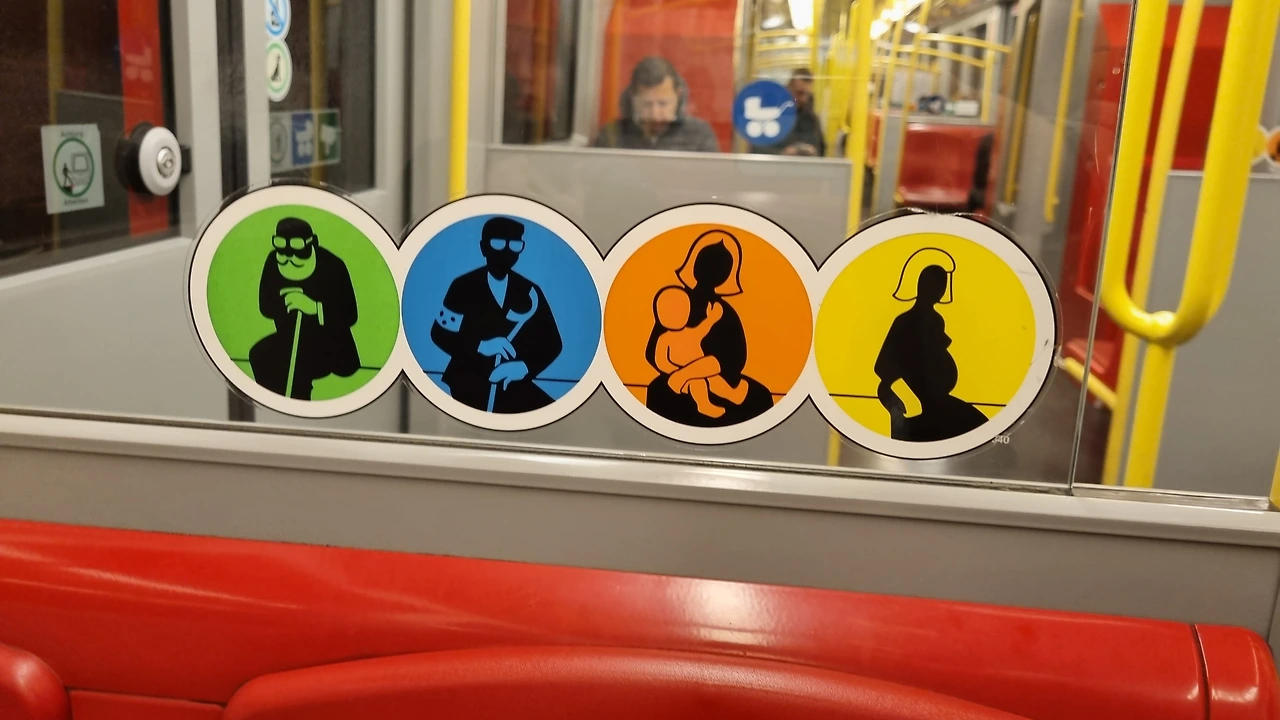 지하철 내부의 노약자석 표지가 귀여워.