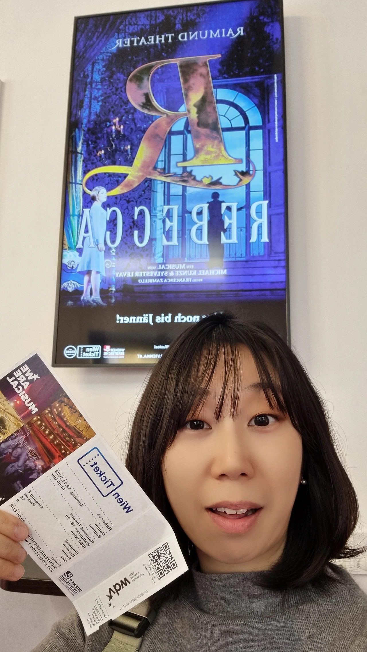 뮤지컬 레베카는 대프니 듀 모리에의 소설 <레베카>를 원작으로 하고 히치콕의 영화에게 많은 영향을 받아 만들어진 오스트리아 뮤지컬이다. 초연(가장 처음 열린 공연)도 오스트리아 빈에서였다고 해서 여기 온 김에 보고 싶었다. 일요일 오후 2시 공연이었는데 2층은 어땠는지 모르지만 1층 전석이 꽉 찼다.