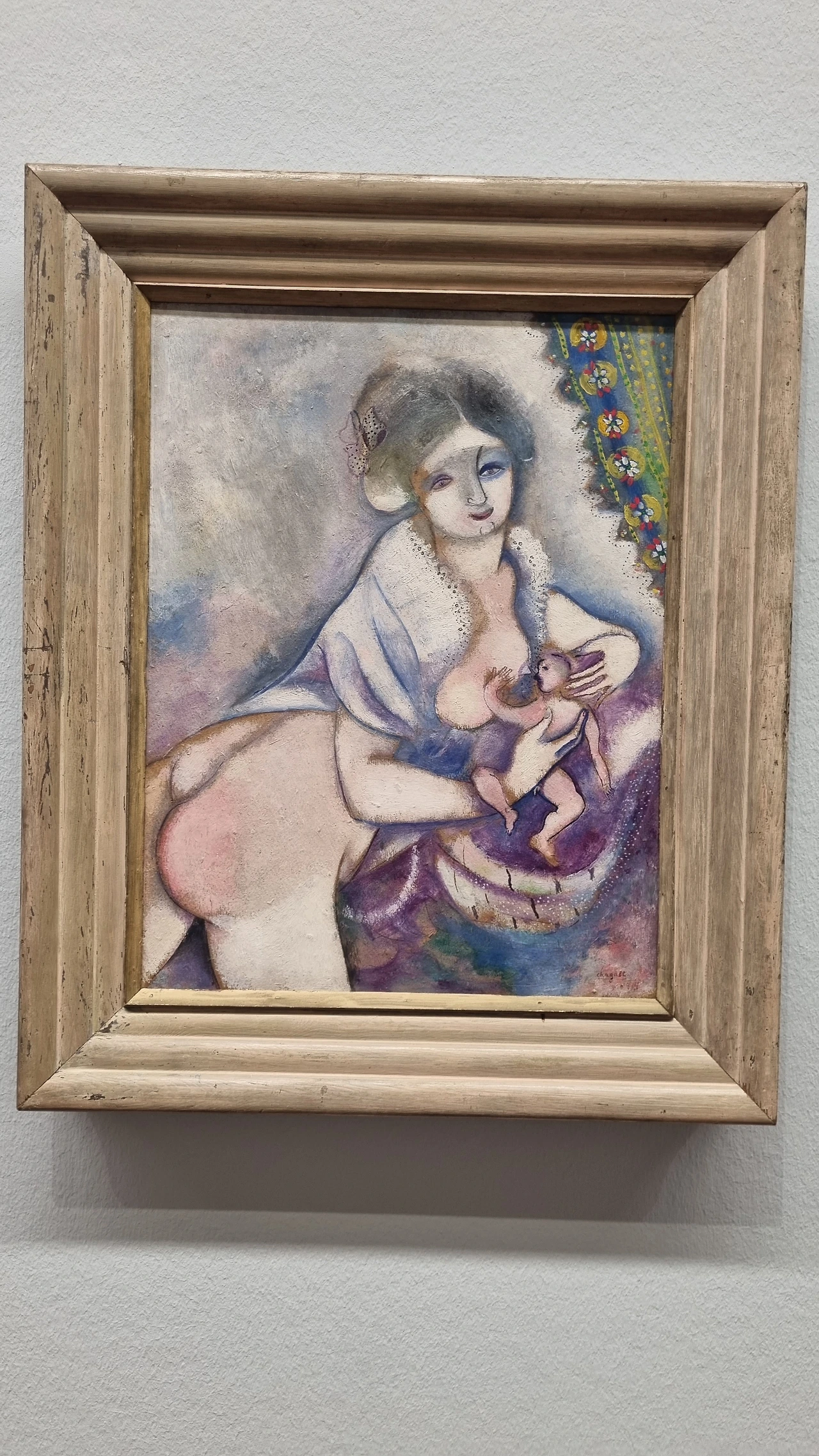샤갈을 특히 좋아한다. 몽실몽실한 꿈결 같은 이야기를 들려주는 것 같아서다. / 아기에게 젖 먹이는 엄마를 그린 작품