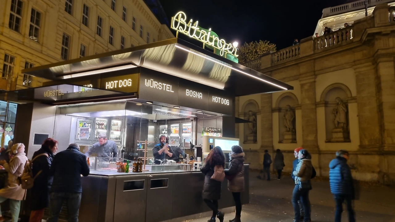 단기 속성으로 미술관 관람을 끝내고 2층 테라스로 나오니 어젯밤 인터미션 때 도망(!)쳤던 국립오페라극장의 야경이 보인다. 한국인 관광객 두 분이 계셔서 사이좋게 사진을 서로 찍어드렸다. 알베르티나 미술관 앞에는 핫도그 맛집인 비트징거 라는 가게가 있다. 소세지 안에 치즈가 쏙쏙 박힌 메뉴를 포장한 후 크리스마스 마켓 가서 따뜻한 음료와 함께 먹어야지. 하여튼 먹는 것에 관해서 두뇌 회전이 참 잘 된단 말이지.