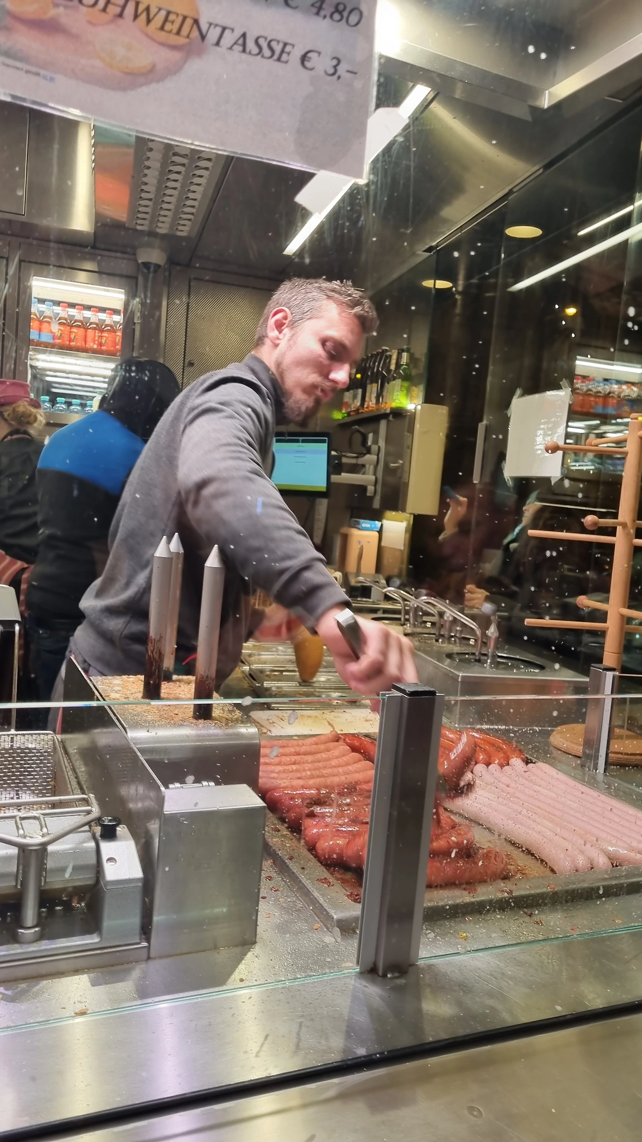 핫도그 포장해서 슈테판 성당 앞 크리스마스 마켓으로