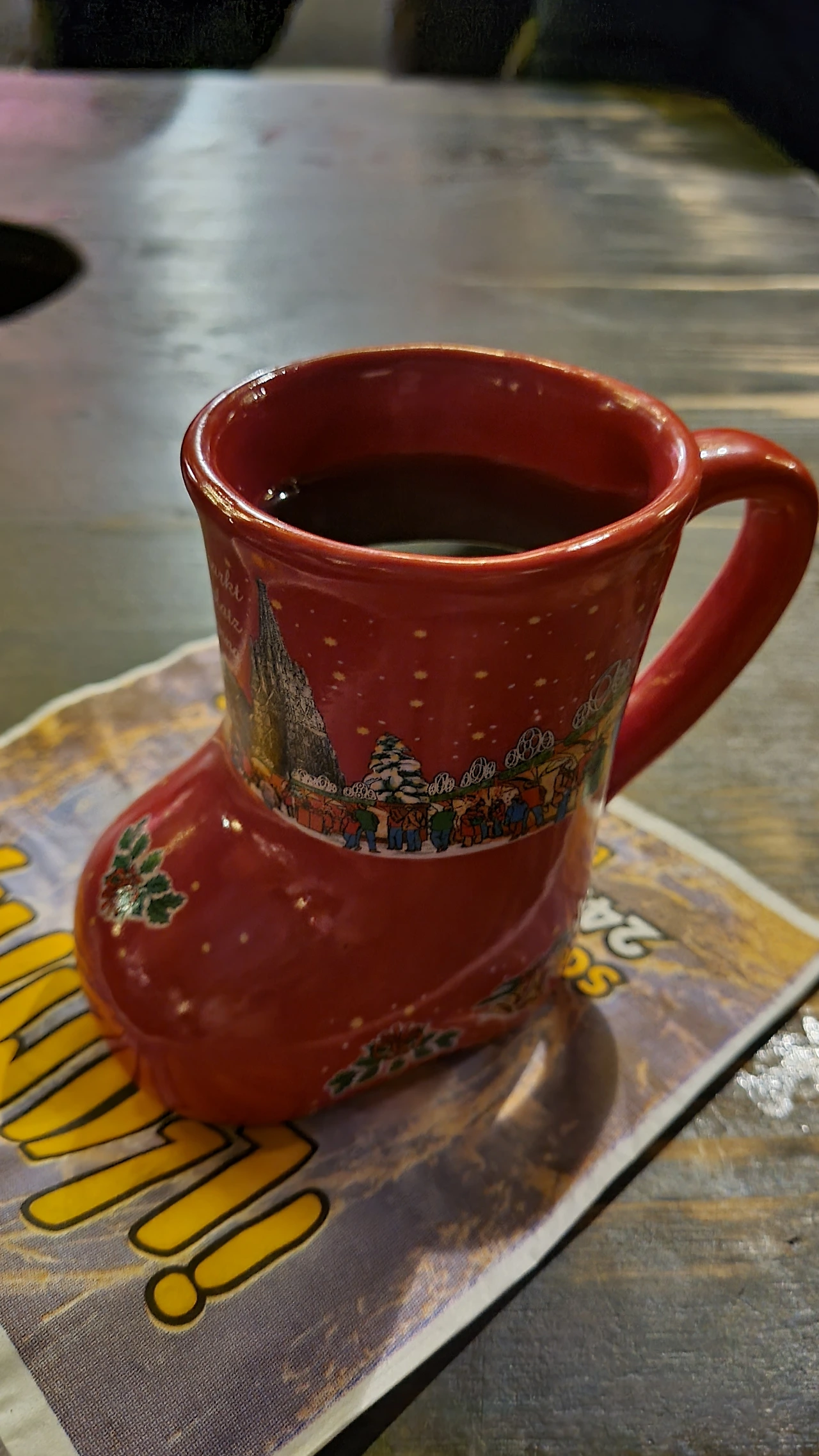 깜찍한 장화 잔에 어린이용 음료로 한 잔 마심.