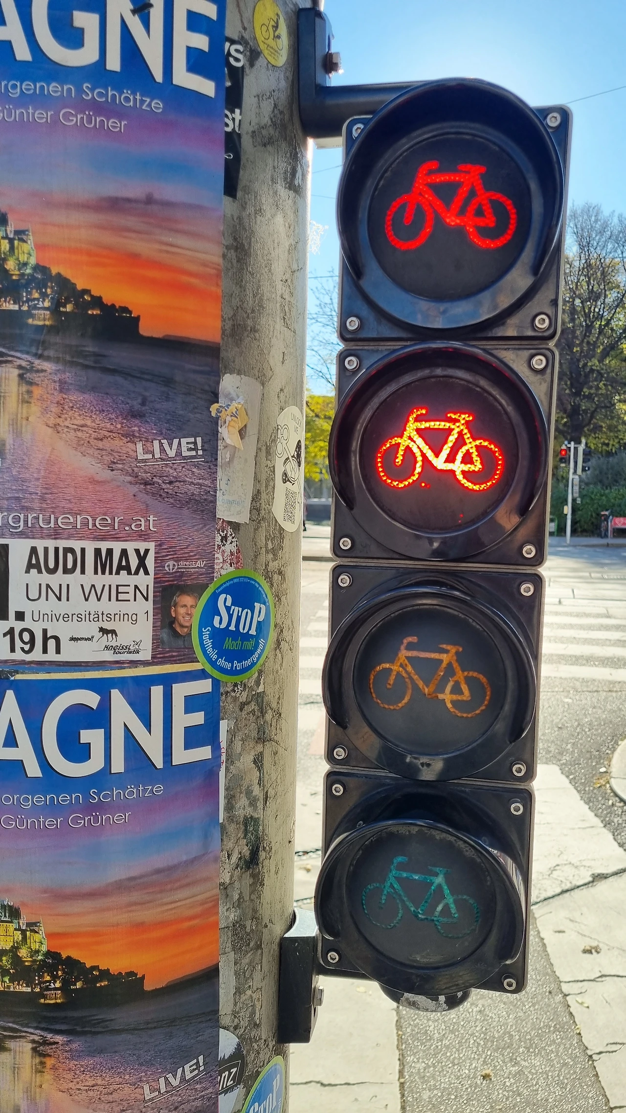 자전거를 많이들 타고 다녀서 횡단보도에 꼭 자전거 신호등이 있었다.