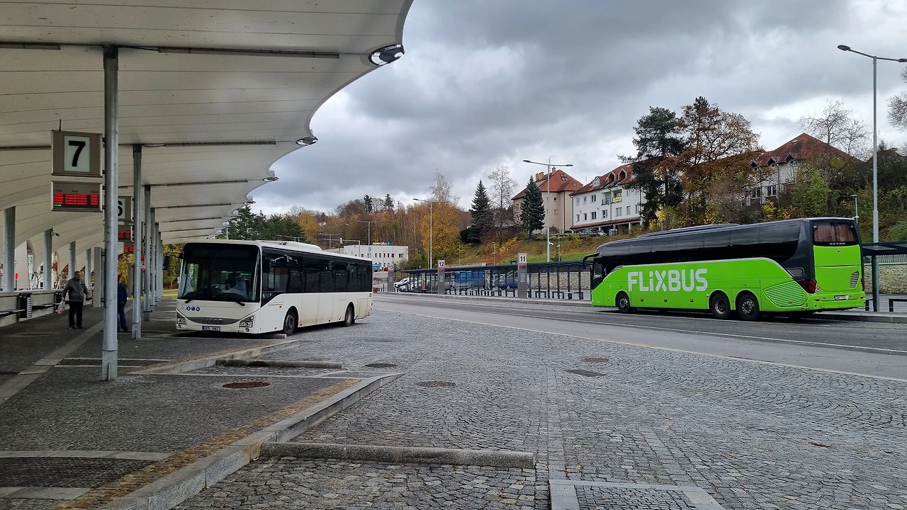 이웃 도시 타보르로 이동할 시간이다. 이번에도 청개구리 같은 플릭스버스를 타려고 터미널로 왔다. 터미널엔 오스트리아에서 봤던 유리 책장이 있었다.
