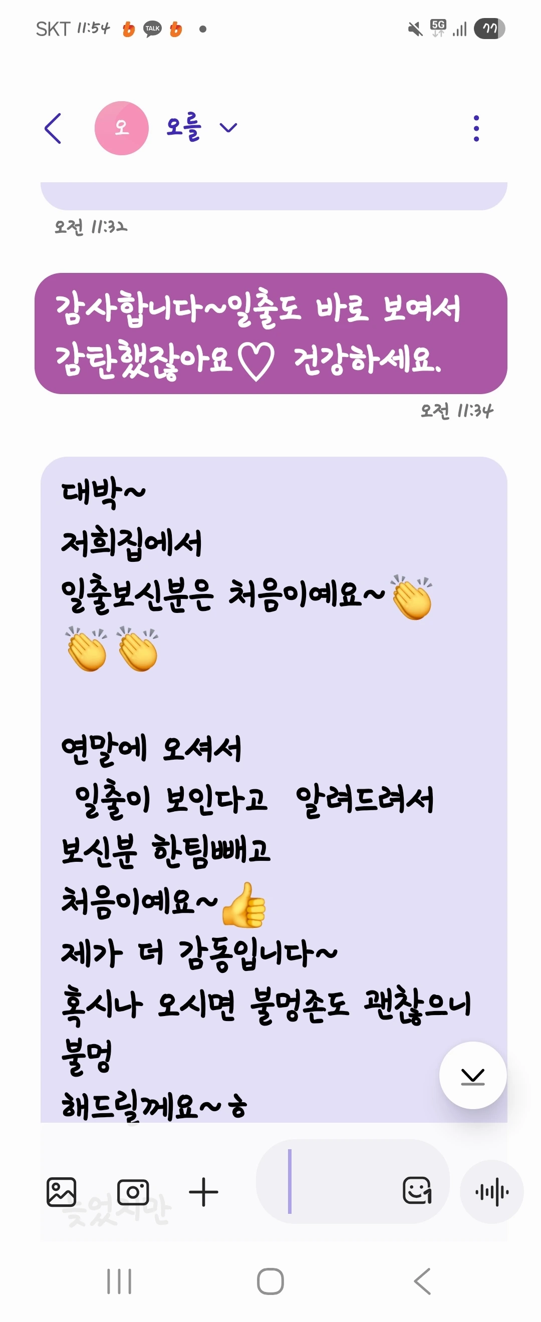 내 안의 두려움. 긍정보다는 부정, 별일 있겠어? 보다는 무슨 일이 생기면 어쩌나?의 마음이 자꾸 더 커졌다. 나름 날씨 요정이잖아~ 너무 겁먹지마. 지나고 나서 보니 초반 3박 4일은 축복 그 자체였다. 뒤에 1박 2일은 강풍주의보에 눈이 왔지만 그 나름으로 좋았다. (폭설만 아니면 된거다)