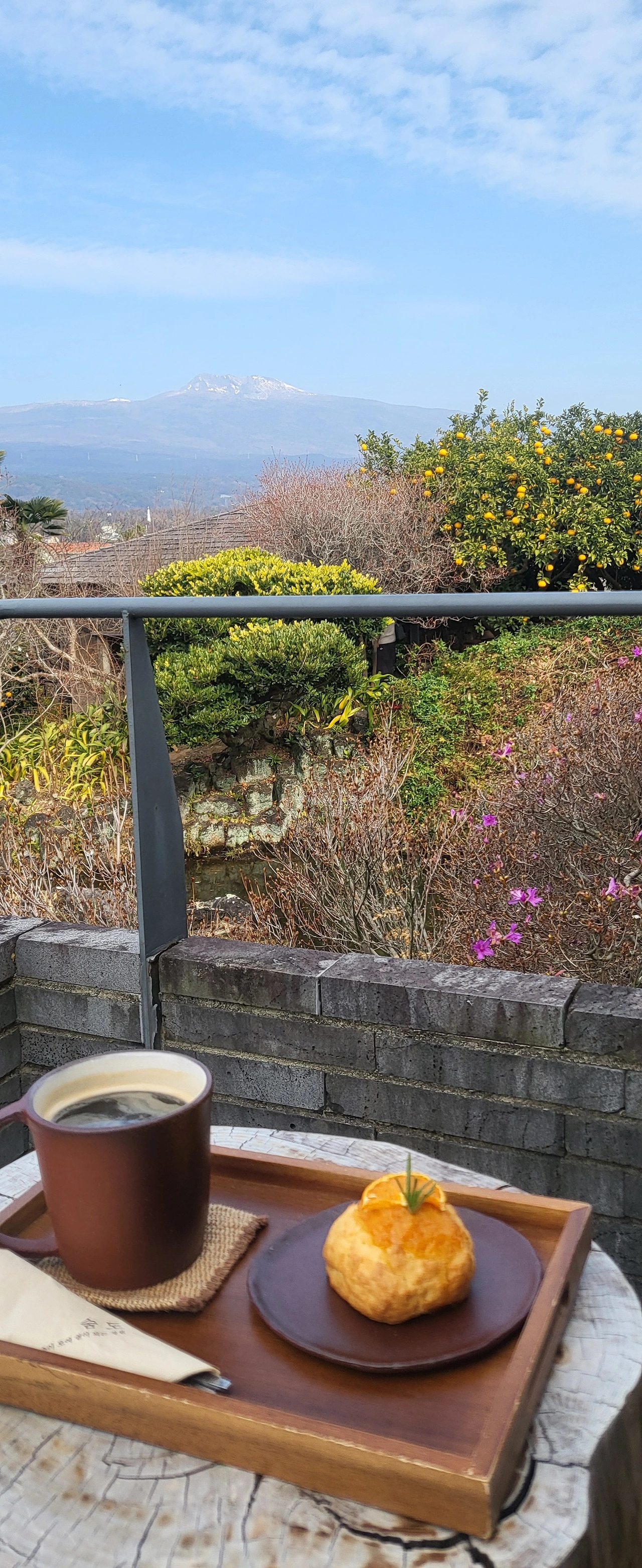 카페 숨도에서 만난 사장님의 배려와 환대도 색다른 경험이다. 인스타로 소통했는데 정말 연락을 받아주시고 티타임도 함께 해주셔서 감사했다. 좋은 사람으로 좋은 삶을 살며 나도 누군가에게 베풀어야겠다는 생각을 강하게 하게 된 계기. 숨도 공원은 너무너무 근사했다. 동백과 하귤이 공존하는 환상의 아름다움. 한라산 뷰를 보며 카페에 앉아 있으니 여기가 무릉도원이구나 싶을 정도였다.