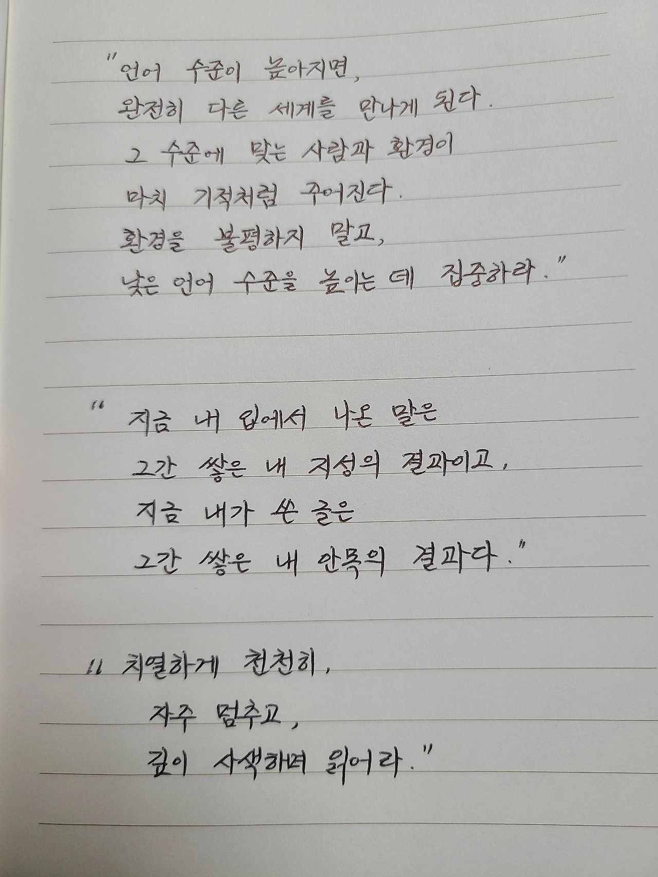 차분히 앉아서 한 글자씩 집중해서 손으로 쓰는 순간의 몰입감과 고요함을 사랑한다.