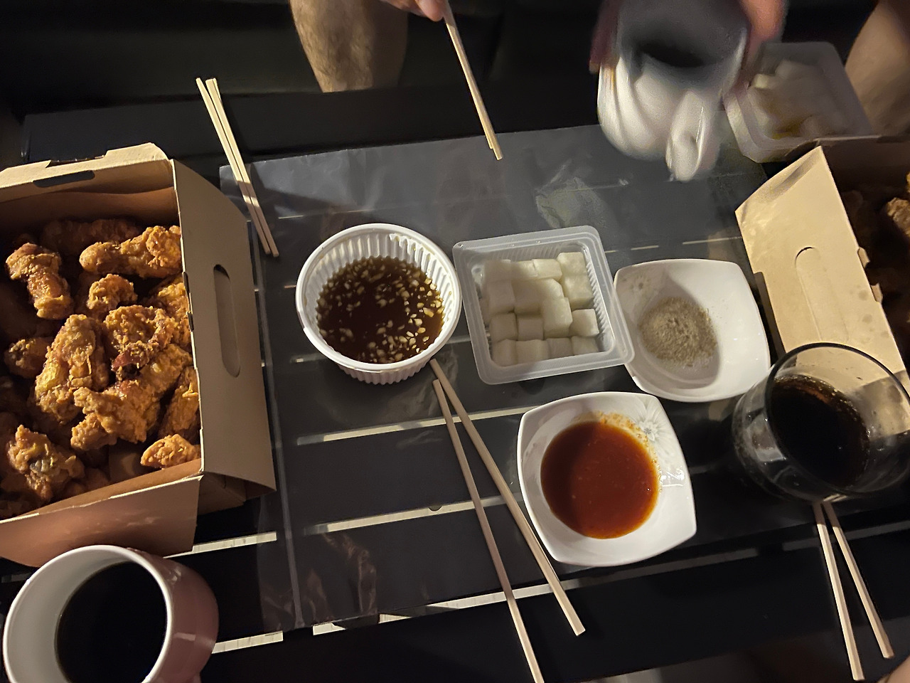 평일은 그렇다 해도 주말은 식구들과 한 끼 정도는 마주앉아 먹는 루틴을 만들고 싶었다. 주중에 각자 바쁘게 지냈으니 아이들이 먹고 싶어하는 음식이나 간식, 야식이라도 기꺼이! 불금이라는 말이 생겨난 이후 금요일 저녁 문화도 많이 바뀐 것 같다. 이틀이라는 주말시간이 있을테니 마음이 편안해지고 5일간 힘들게 지낸 일상을 보상받고자 하는 심리가 작용한다. 언제부턴가 금요일이 되면 아들딸은 저녁에 치킨을 시켜먹는 걸 당연하게 생각하고 아빠에게 주문을 한다. 세상자상한 남편은 기꺼이 요구하는 바를 들어주고 아이들이 좋아하는 모습을 보면서 흐뭇해한다.