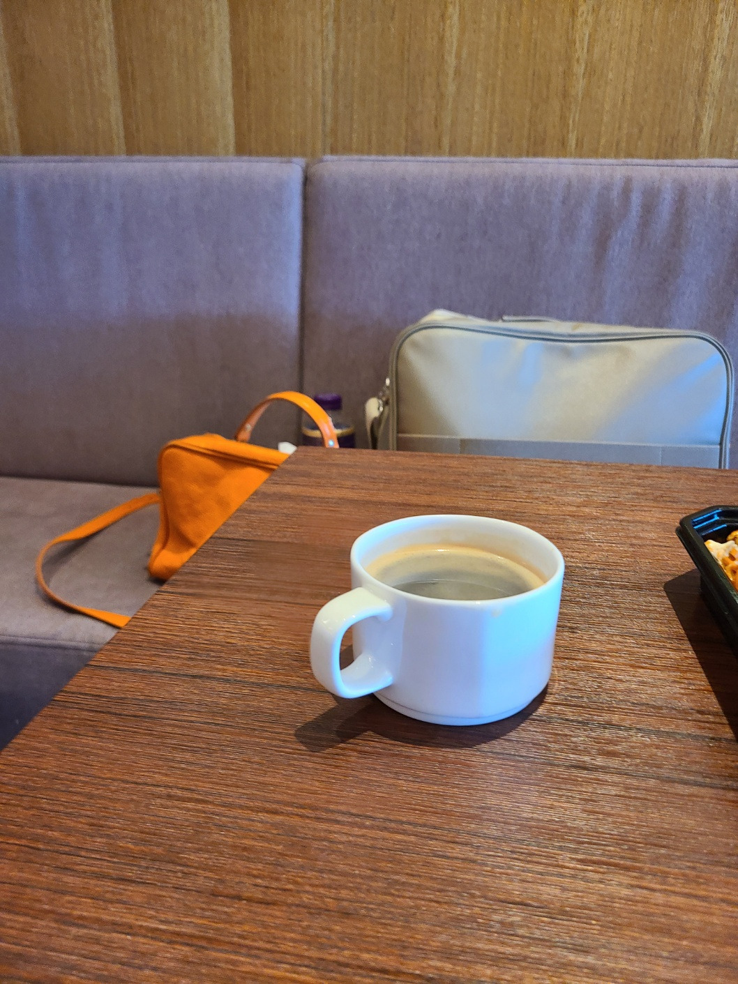 어젯밤 잠을 설치며 자는둥 마는둥 했고 꿈을 많이 꾸어서 피곤했다. 공항 버스를 탔는데 차가 막혀서 수원에서 김포 공항까지 2시간이나 걸렸다. 버스안에서 잠을 조금 보충하긴 했지만 공항에 여유있게 도착하지 못했다. 라운지 이용이 가능하다고 해서 우아하고 여유롭게 좀 누려볼까 했더니만 버스가 늦게 도착한 바람에 탑승시간까지 별로 시간 여유가 없었다. 여유는 커녕 마음이 조급해서 챙겨간 샐러드와 라운지에서 뽑은 커피를 허겁지겁 먹어 치우기 바빴다. 어흑. 속상하다.