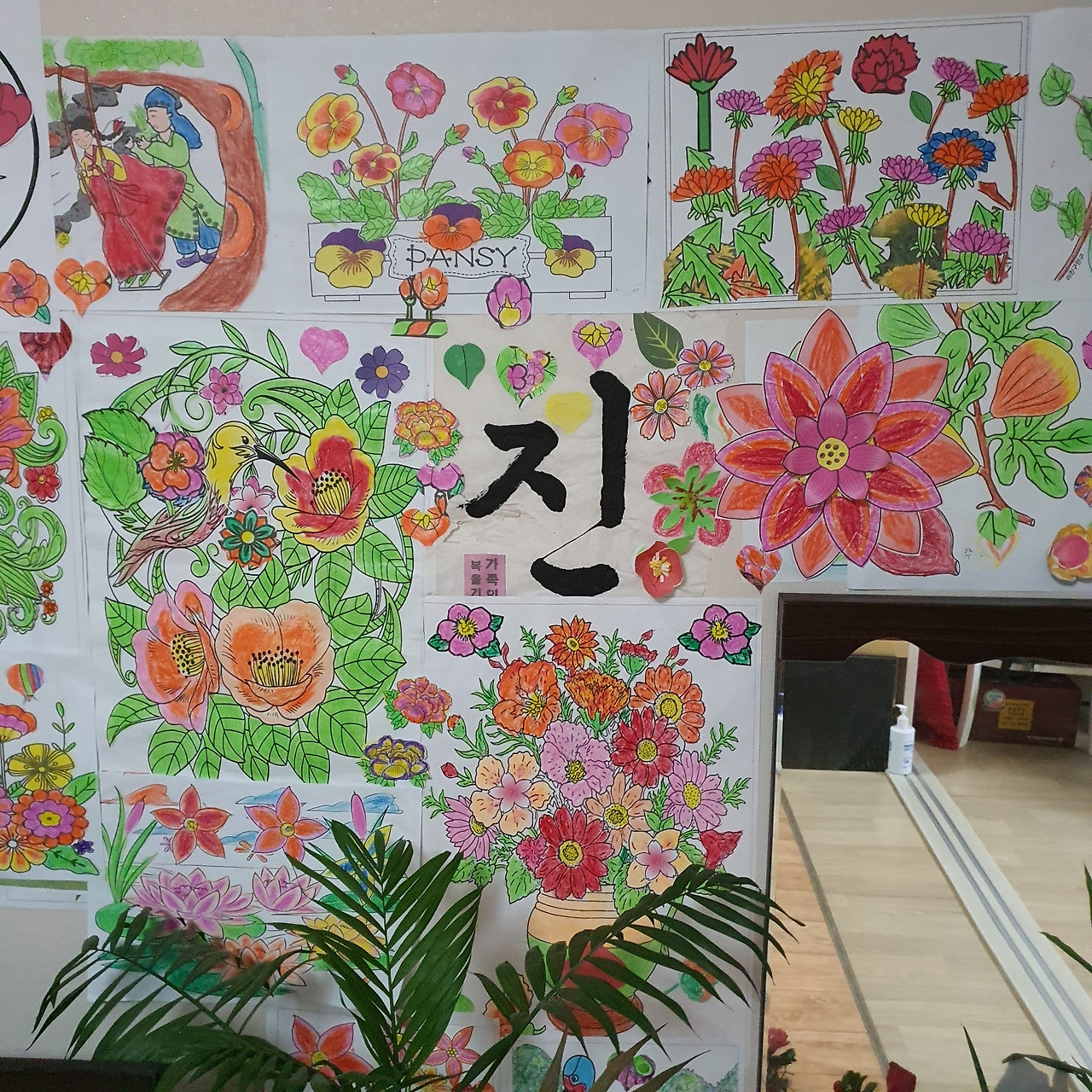 우리 엄마가 올해 97살이에요. 여전히 건강하고 정정하게 지내셔요. 그 시대 분들 한글 모르는 분들도 많은데, 우리 엄마는 그 옛날 시골에 개척교회에서 목사님들이 가르쳐주는 한글을 배워서 성경도 읽고 쓰고 했어요. 노인정에서 총무를 하셨는데 어느 날 집에 가니까 구구단이 붙어있어요. 계산기로 하면 편하다고 알려드렸는데도 아니라고 구구단도 알아야 된다고 굳이 또 외우시더라고요. 그림도 진짜 잘 그려요. 이거 우리 엄마가 그린 거예요. 나 진짜 깜짝 놀랐잖아요. 이 꽃잎 하나하나 진하고 연한 거 표현한 것 좀 봐요. 다른 사람들은 막 밖으로 튀어나가고 그런단 말이에요. 글씨도 너무 잘 쓰지 않았어요?