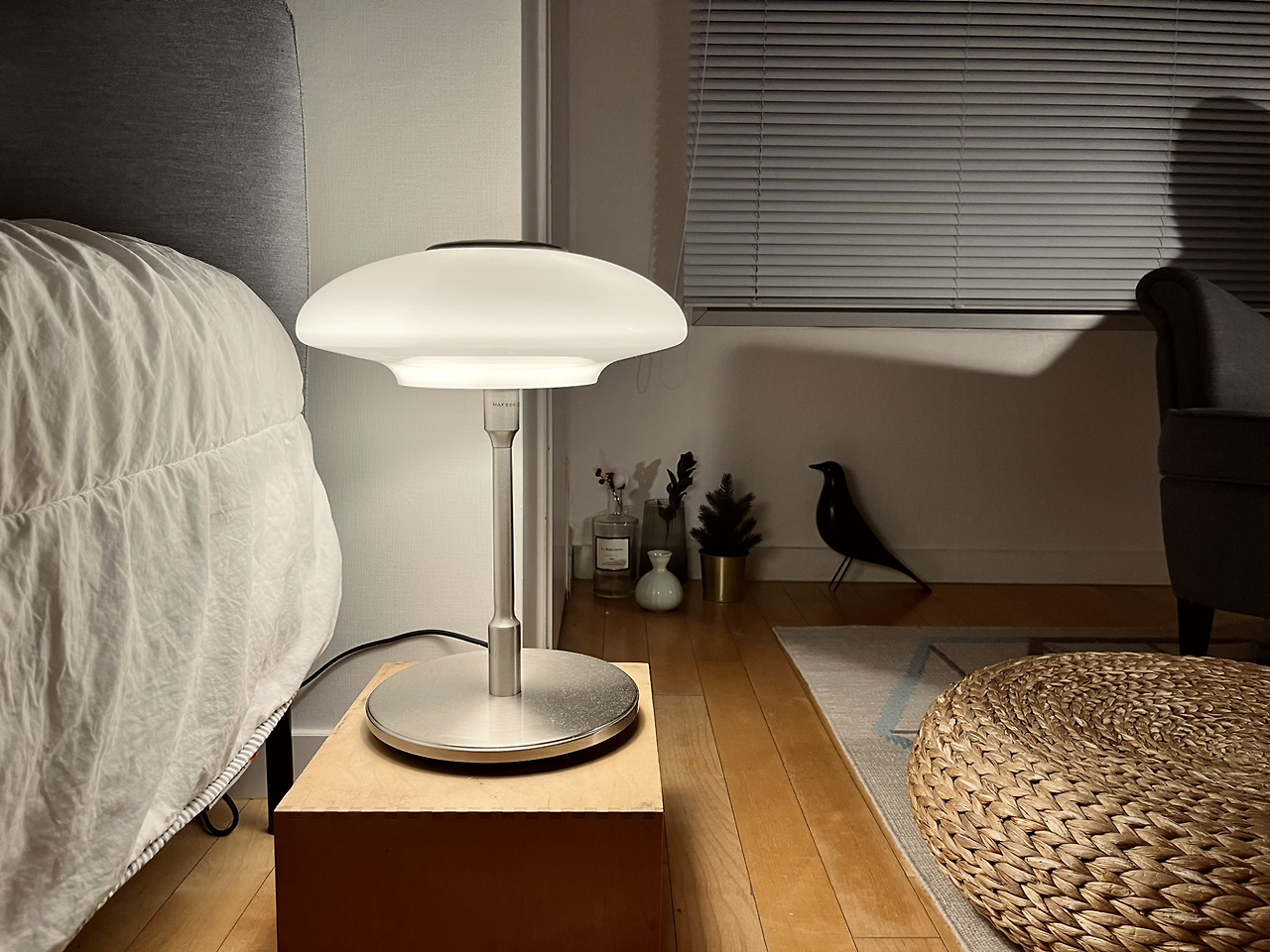 이불밖으로 나가지 않고 불을 끄기 위해 최근 이케아에서 탁상스탠드를 샀다.
