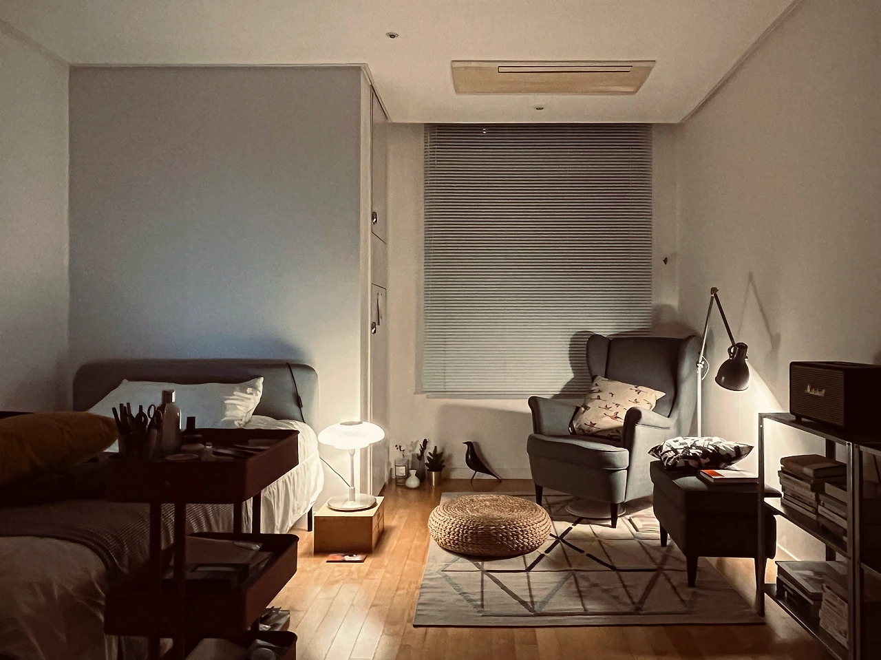 하지만 플로어 스탠드나 탁상 스탠드가 있다면 단조로운 공간이 더욱 풍부해질 수 있다.