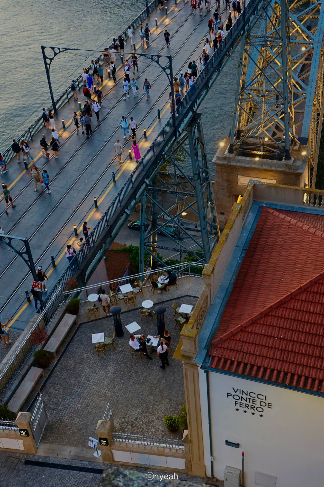 동 루이스 다리는 이층 구조로, 상단과 하단 두 개의 통로를 가지고 있다. 현재 상층부는 포르투 도시철도와 보행자 통행로, 그리고 하층부는 차량과 도보 통행로로 이용되고 있다. 즉, 동 루이스 다리 상하층 모두 사람이 걸어서 건널 수 있는 구조다. 우리는 매일 노을이 지기 전에 다리 상단으로 건너가서 가이아 지역에서 시간을 보내곤 했다. 해가 강을 따라 서쪽으로 길게 떨어지면 포르투의 지붕들은 모두 금빛으로 물들기 시작한다. 도시의 경계선 너머로 해가 완전히 넘어가면 도시의 불빛이 하나둘 켜지면서 또 다른 모습을 드러낸다. 그럼 다시 다리 하단으로 내려와 강바람을 맞으며 구시가지로 돌아왔다.