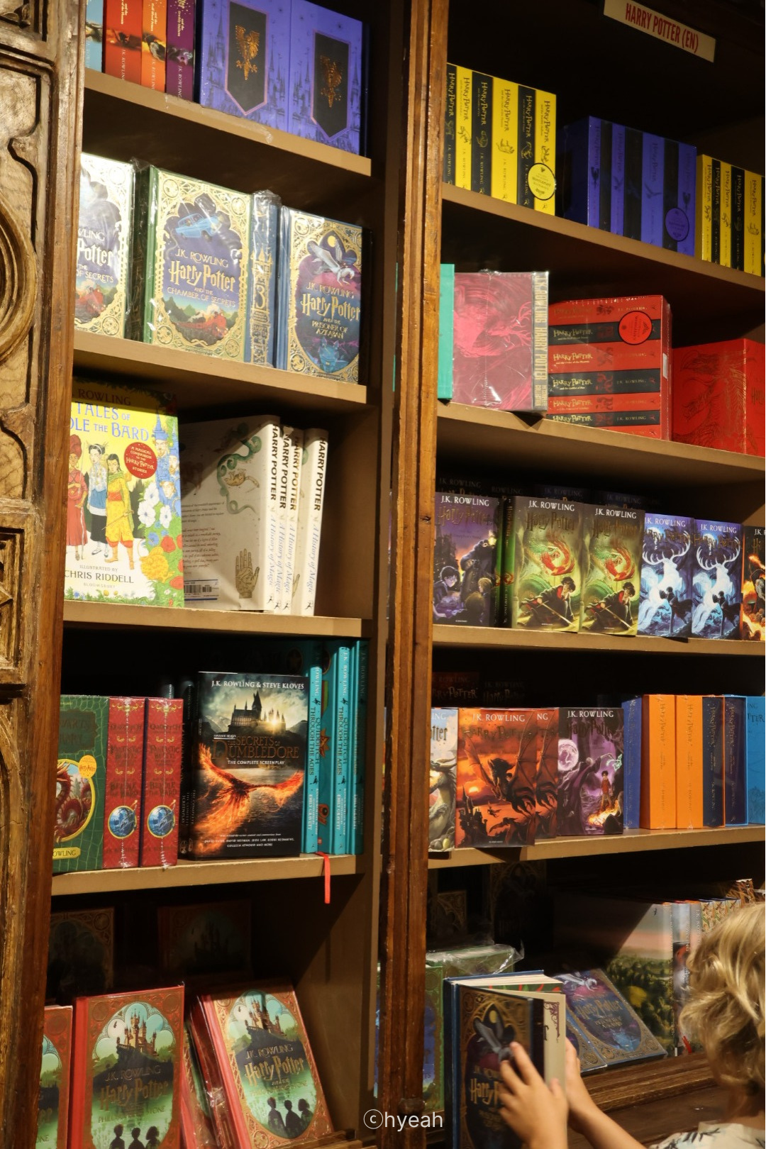 이곳이 움직이는 계단에 영감을 주었던 혹은 아니던. 사람들은 여전히 믿고 있는 것 같다. 어쩌면 믿고 싶어 하는 것일 수도 있다. 우리는 어떤 이야기를 믿어야 할까? 어떤 것을 믿고 어떤 것을 버려야 할까. 종종 헷갈리는 때가 찾아오면 최대한 오래된 이야기 속으로 들어가게 된다. 최소한 백 년은 훌쩍 넘어서 시간의 바람을 맞고도 변하지 않고 살아남은 이야기들. 그렇게 발 디딜 틈 없는 계단 사이로 클래식이라 불리는 책들이 많이 보였다. 셰익스피어, 조지오웰, 브론테 자매와 제인 오스틴, 버지니아 울프, 톨스토이까지. 알 수 없는 언어의 책으로 가득해도 익숙한 작가 이름을 찾는 건 꽤 즐거운 일이다. 아이들의 손에는 단연 해리포터가 많이 들려있었다. 어떤 책을 살까. 나도 계단 사진만 찍고 나갈 수는 없지.