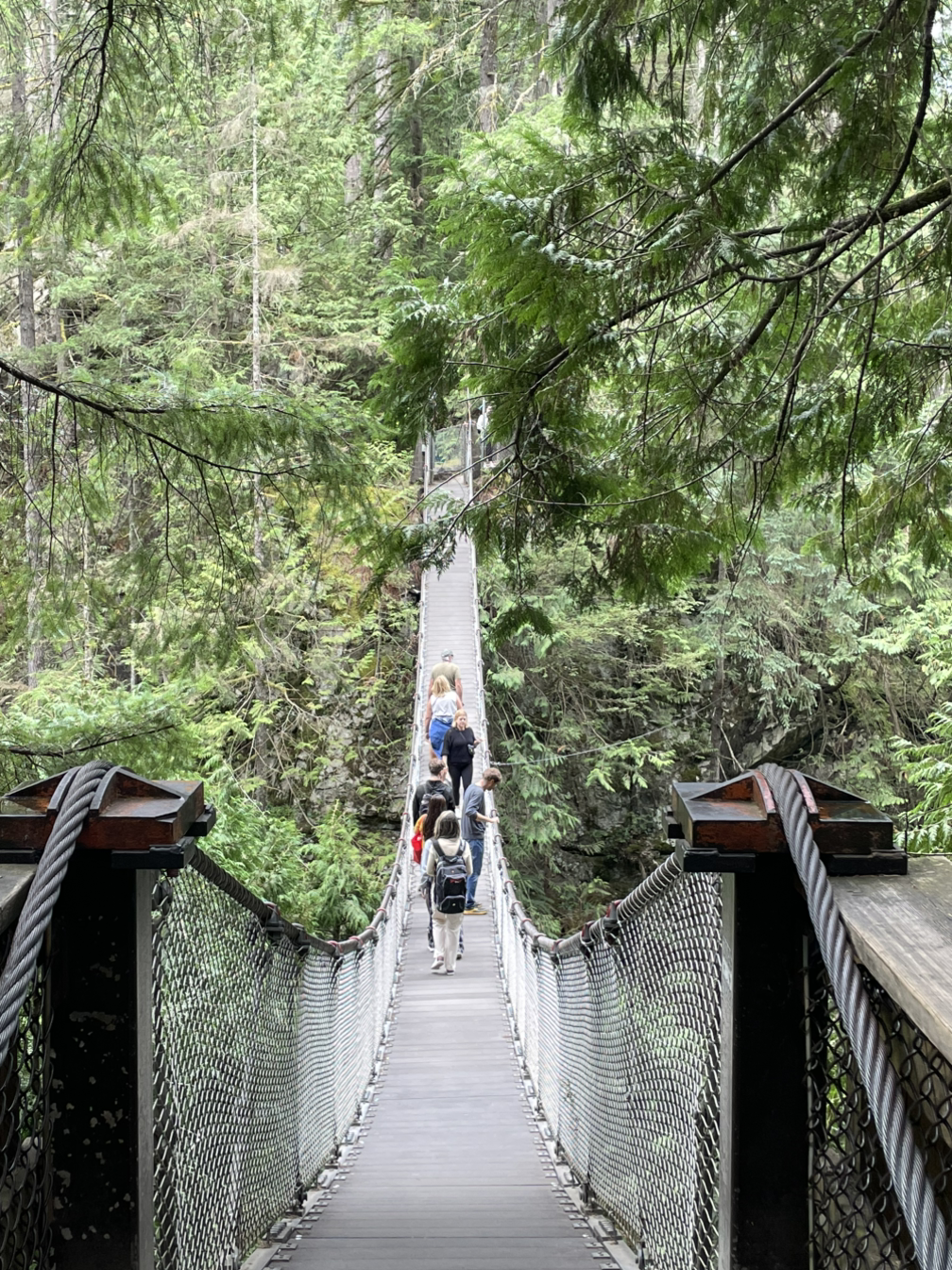 침엽수림이 가득한 울창한 숲 속으로 들어가기 위해서는 Lynn Valley Suspension Bridge라는 현수교를 필수로 거쳐가야 한다. 노스밴쿠버에는 유명한 두 개의 현수교가 있는데, 하나는 캐필라노 현수교 다른 하나가 이 린 캐년 서스펜션 브리지다. 고도 약 50m, 길이 약 48m로 1918년 개설된 100년이 넘은 역사를 가진 오래된 현수교.