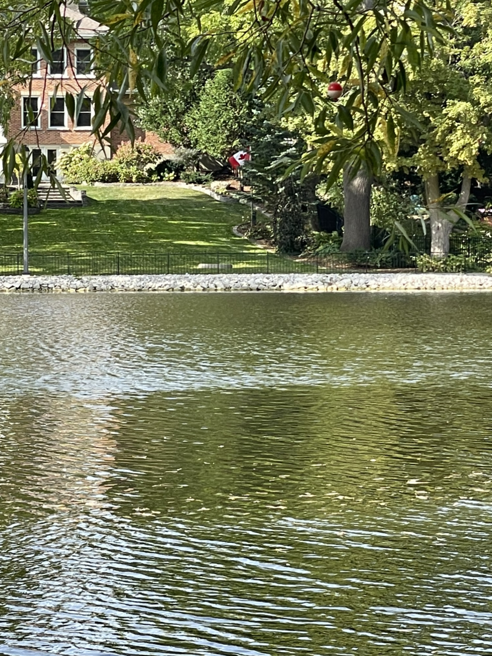 짧은 산책의 끝에 다다른 곳은 잔잔한 호수와 푸른 잔디밭이 있는 곳이었다. 동네 한쪽에 평화로운 호숫가가 있고 그 앞에 작은 공원이 있는데, 이 공원의 이름은 'Veterans Drive Parkland'이다.