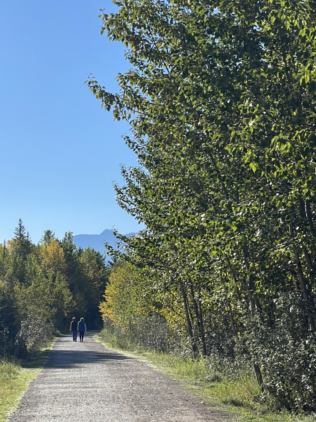 이른 시간 무화과와 견과류를 넣은 요거트를 아침으로 간단히 챙겨 먹고, 산책을 하기 위해 서둘러 숙소를 나왔다. 캔모어의 날씨는 맑다가도 갑자기 비가 오면서 무지개가 뜨고, 바람이 불다가 또 금세 맑아지는 변화무쌍한 날씨를 가지고 있지만 이날은 이른 아침부터 맑게 갠 하늘에 예쁜 구름만 평화롭게 둥둥 떠다니고 있었다. 숙소에서 작은 다운타운까지는 도보로 15분. 맑은 공기를 잔뜩 들이쉬며 웅장하게 서있는 로키 산맥을 양쪽으로 품고 걷기 시작했다.