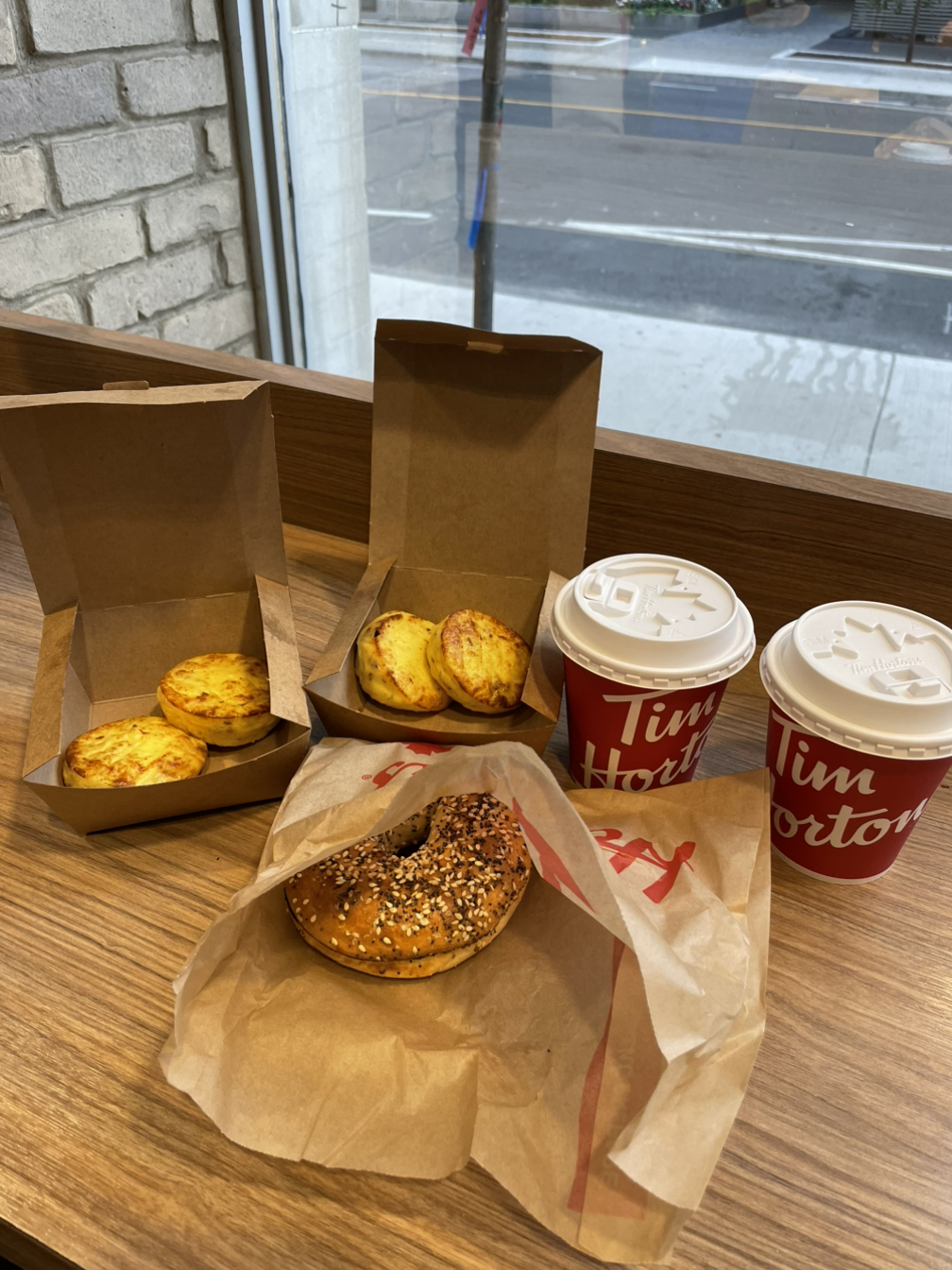팀홀튼은 현재 캐나다에만 4,300여 개의 매장을 보유하고 있는데, 그만큼 캐나다 어느 도시를 가든 쉽게 찾아볼 수 있는 곳이다. 맛있는 커피는 물론, 매장에서 갓 구운 베이글, 페스츄리, 도넛뿐만 아니라 샌드위치나 수프, 따뜻한 오트밀까지 아침 식사로도 충분한 다양한 메뉴들을 판매하고 있는 프랜차이즈 카페. 그러나 이 브랜드가 소위 '캐나다 국민 카페'라는 별명을 갖게 된 건, 무엇보다 합리적인 가격 때문이라고 생각한다. 이런 맥락에서 보면, 특히나 배가 고픈 유학생들에게 이 다정한 카페는 없어서는 안 될 존재라고도 할 수 있다. 만만치 않은 물가를 자랑하는 캐나다에서 1.99달러의 따뜻하고 깊은 드립 커피, 2.08달러의 에브리띵 베이글은 춥디 추운 토론토의 겨울 아침도 따뜻하고 배부르게 지낼 수 있는 한 끼가 되기 때문이다.