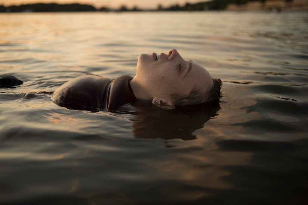 수영복을 갖춘 사람들과 달리 앞 뒤로 꽉 막힌 옷을 입고 한 발, 두 발, 호수로 다가선다. 가발을 벗고, 제 머리카락에 닿는 물의 흐름을 그대로 느껴본다.