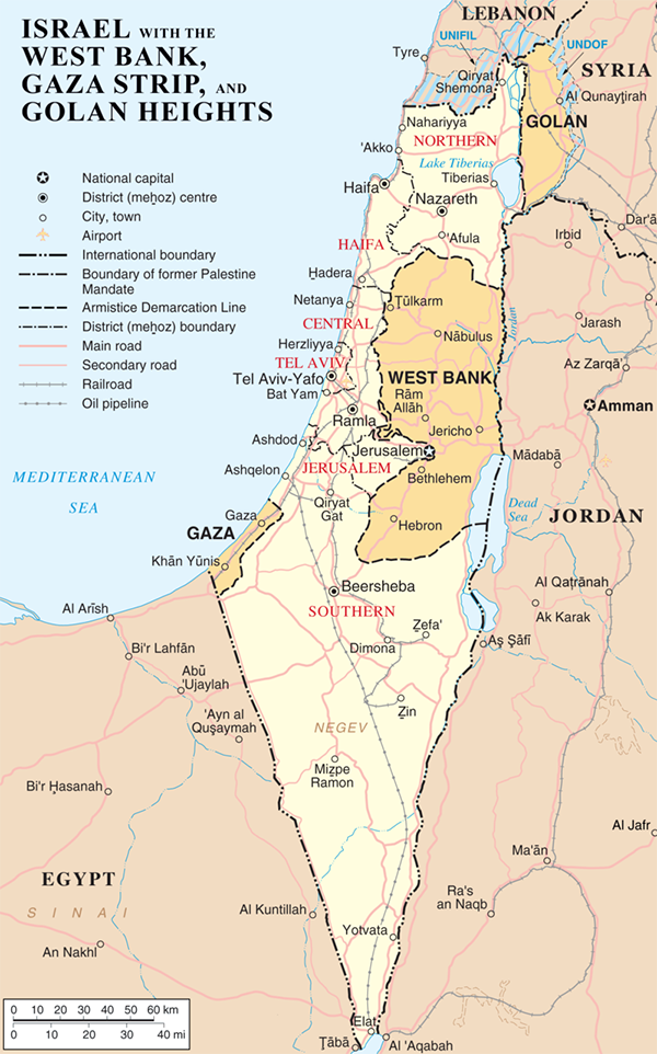 연한 노란색은 이스라엘이다. 그리고 이스라엘의 양쪽에 살짝 주황빛을 띠는 서안지구(WEST BANK)와 가자지구(GAZA), 그러니까 팔레스타인이 있다. 한 나라가 다른 나라 안에 속해있고, 그 안에서 둘로 나뉘어 전혀 교류가 없는 상태에 놓여있다.