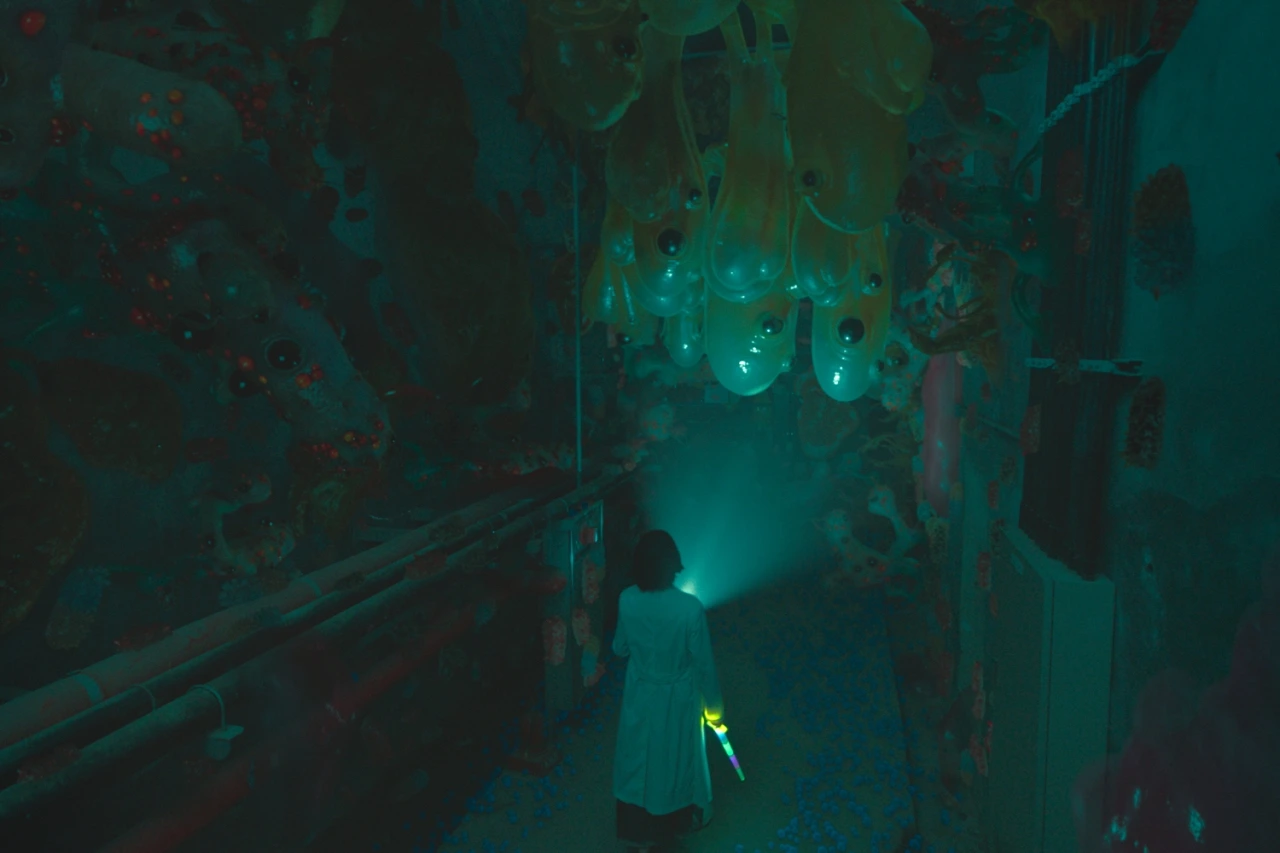 그러나 안은영은 어려서부터 세상에 들끓는 '젤리'들을 보았다. 우리는 그 세상을 화면 너머에서 처음 마주한다. 시꺼멓고 넙데데한 생김새가 꼭 <센과 치히로의 행방불명>에서 보았던 '오물 신' 같던 두꺼비 젤리, 게임에서 레벨이 낮을 때에나 상대했던 몬스터처럼 앙증맞은 문어 젤리. 안은영은 색색깔로 번쩍이는 장난감 칼을 들어 젤리를 무찌른다. 그럴 때마다 젤리는 파티에서 터뜨리는 폭죽처럼 알록달록하게 바뀌어 통, 통, 터진다. 물처럼 어딘가에 스며들어 흔적도 없이 사라지는 이 광경을 안은영만 눈에 담는다. 학생들이나 다른 선생님들은 어리둥절한다. 보이지도, 들리지도 않는 괴상한 해프닝이 생겼더라고.