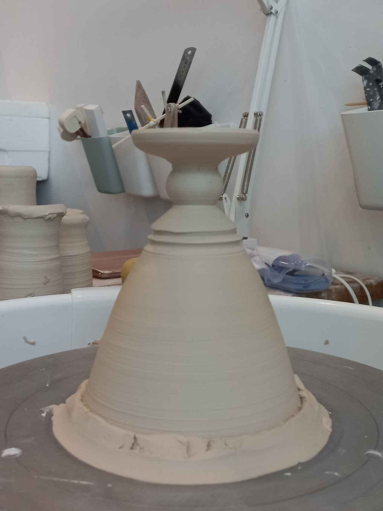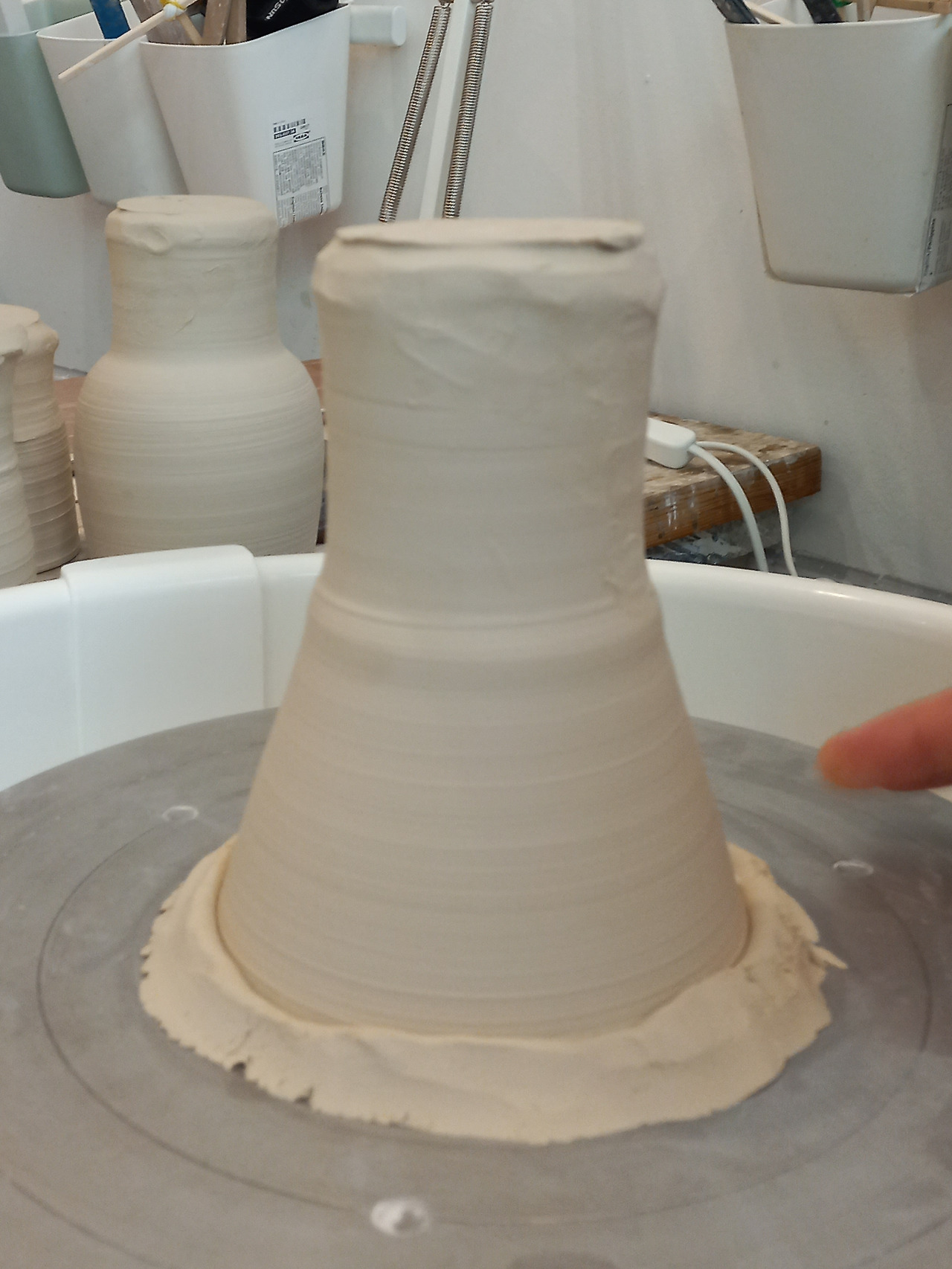 성형한 기물들은 이틀에서 일주일쯤 말린 후 정형을 한다. 내 수업 시간은 일주일에 두 번이다 보니 정형하기 적당하게 흙을 말리는 일은 공방 선생님 몫이다. 선생님은 스티로폼 상자 안에 기물들을 넣고 뚜껑을 열었다 닫았다 하며 마르기를 조절해 주신다.