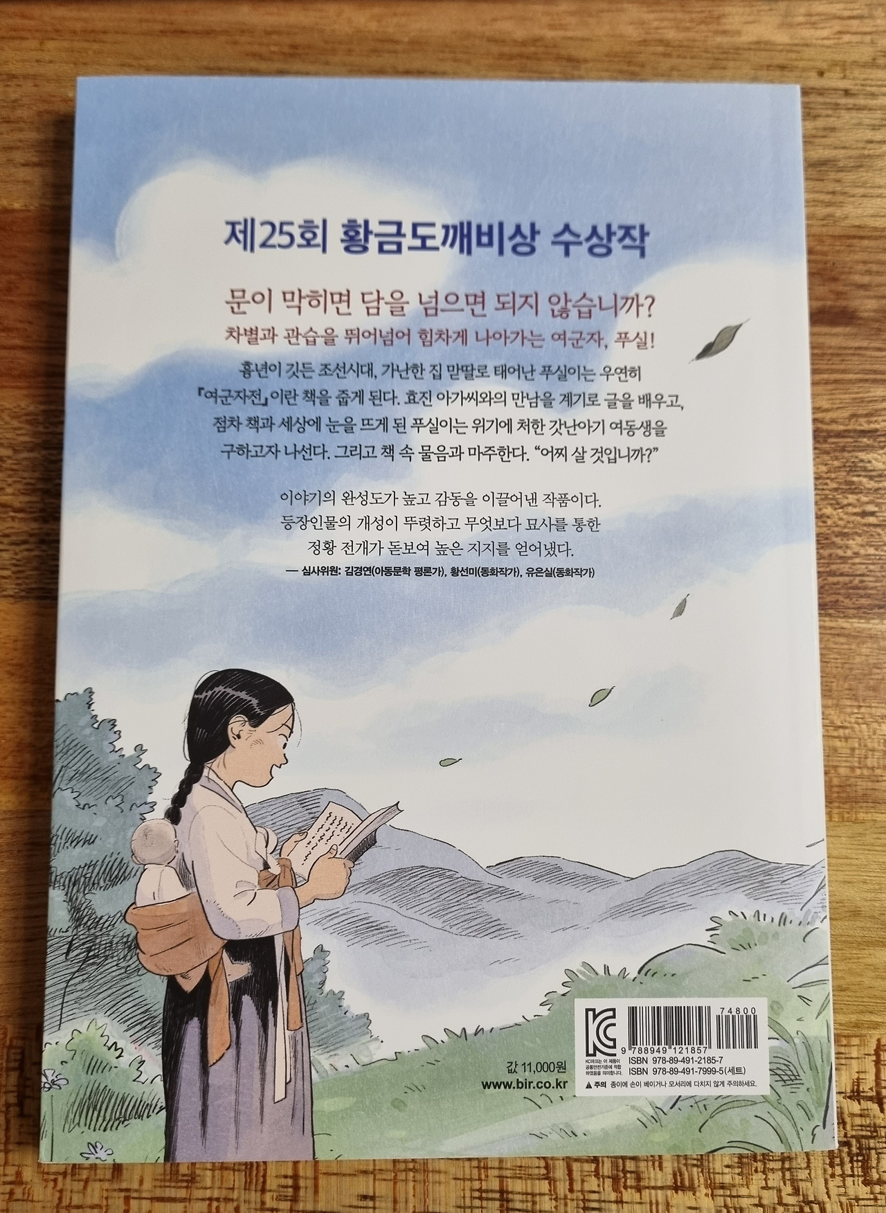 푸실이가 겪었던 차별에 대해서도 고민해 보자. 성별, 종교, 인종, 민족, 지역, 나이 등등. 편견과 차별에는 다양한 이유가 있다. 자신이 속한 공동체 안에서 편견과 차별로부터 완벽하게 자유로울 사람은 많지 않을 것이다. 차별의 피해자로서 혹은 가해자로서 내 안에서 찾게 되는 그것들에 대해서도 생각해본다. 나의 중심이 명확히 정립되어 있지 않다면 세상은 너무나 고통스러운 공간이 될 수 있다. 그런 세상에서 우리는 꿈을 향해 나아가지 못한다. 나를 막아서는 그 '담'을 어떻게 뛰어넘을 것인가? 푸실이에게 답을 주었던 <여군자전>을 만나게 되길 소망한다. 아직 만나지 못했다면 말이다.