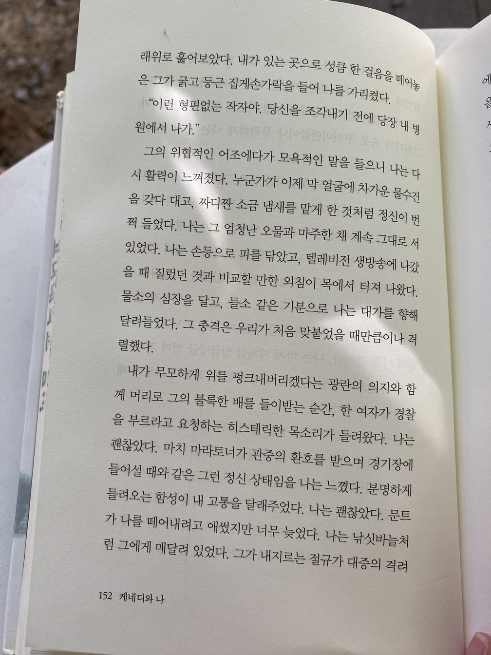 집에 도착할 때쯤 숨이 찼다. 서둘러 주방으로 간 나는 커다란 컵에 물을 따라 마시고, 샤워를 하러 갔다. 수증기로 가득한 욕실에서 나오면서 나는 실제로 다른 사람이 된 듯한, 결정적으로 내 삶의 한 페이지를 넘겨버린 듯한 느낌이 들었다.