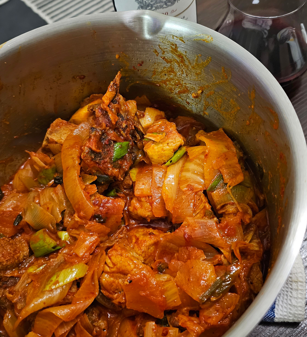 돼지고기 김치찜과 쌉싸름한 레드 와인이 이렇게 찰떡궁합일 줄이야! 비록 젓가락도 없이 포크로 푹푹 찍어먹어야 했지만, 파리에서의 집밥은 언제나 성공적이었다. 요리하는 즐거움이 넘치는 도시, 파리에서의 생활이 점점 더 마음에 들었다.