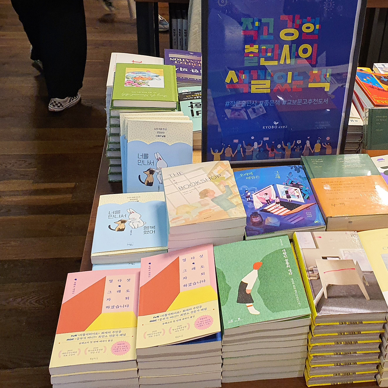 출간된 지 한 달 정도 지났을 무렵, 믿기 힘든 소식이 들려왔다. 내 책이 교보문고 추천도서에 선정되었다는 거였다! 그렇게 내 책은 교보문고 MD님들이 뽑은 작은 출판사의 좋은 책, '작고 강한 출판사의 색깔있는 책' 코너에 오르게 되었다. 광고비를 쓰지 않고도 평대 위에 오를 수 있다는 게 꿈같은 일이었다.