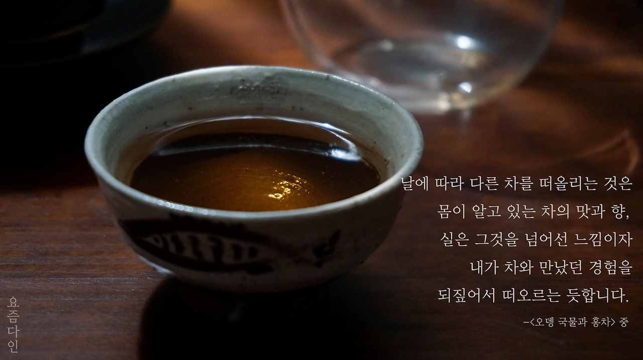 날에 따라 다른 차를 떠올리는 것은 몸이 알고 있는 차의 맛과 향, 실은 그것을 넘어선 느낌이자 내가 차와 만났던 경험을 되짚어서 떠오르는 듯합니다. 으슬으슬 추운 날에 오뎅 국물이 떠오르는데, 딱 무가 커다랗게 썰려 들어가서 시원하게 끓인, … 하고 생각하는 것과 그리 다르지 않습니다.