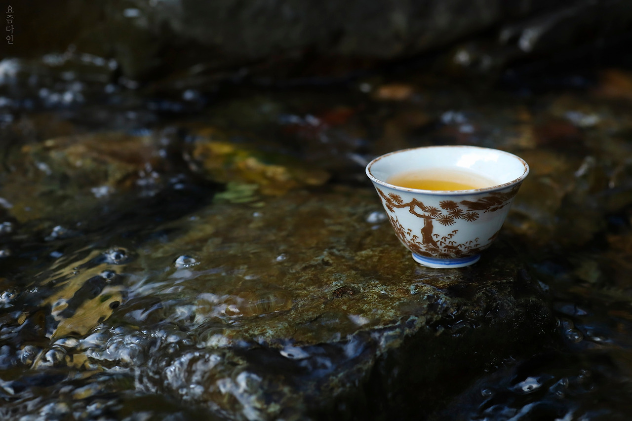 계곡물 흐르는 소리에 찻물 치는 소리가 얹히네