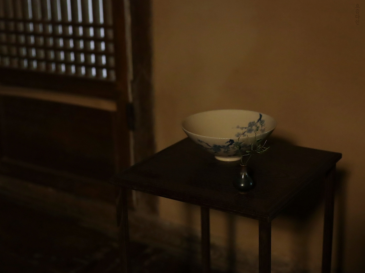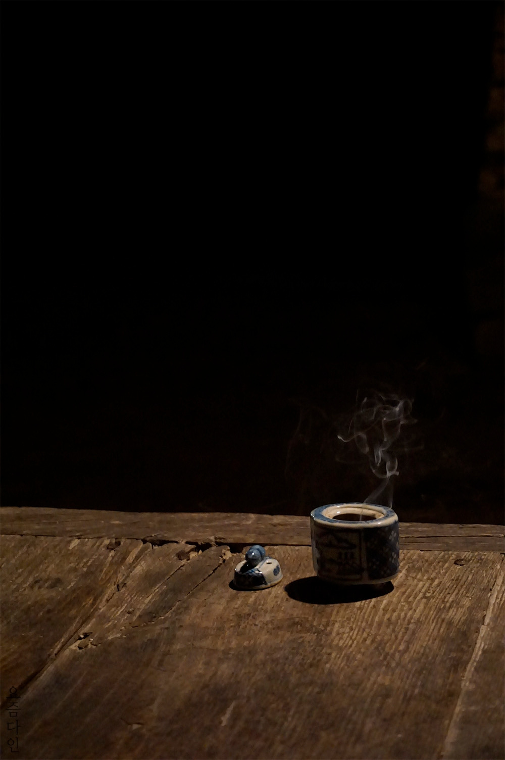 차가운 빗방울이 기와에 떨어지는 소리, 바닥에 떨어진 빗방울 자리가 별처럼 빛나고, 주위가 하도 어둡고 한적한 시골이라 세상에 이 풍경만 있는 것 같은 고요함, 그 사이에서 차솥이 바람처럼 물 끓는 소리를 내는 순간.