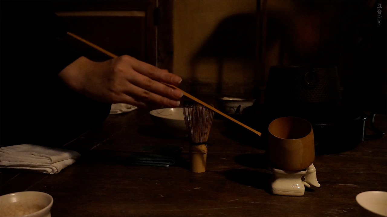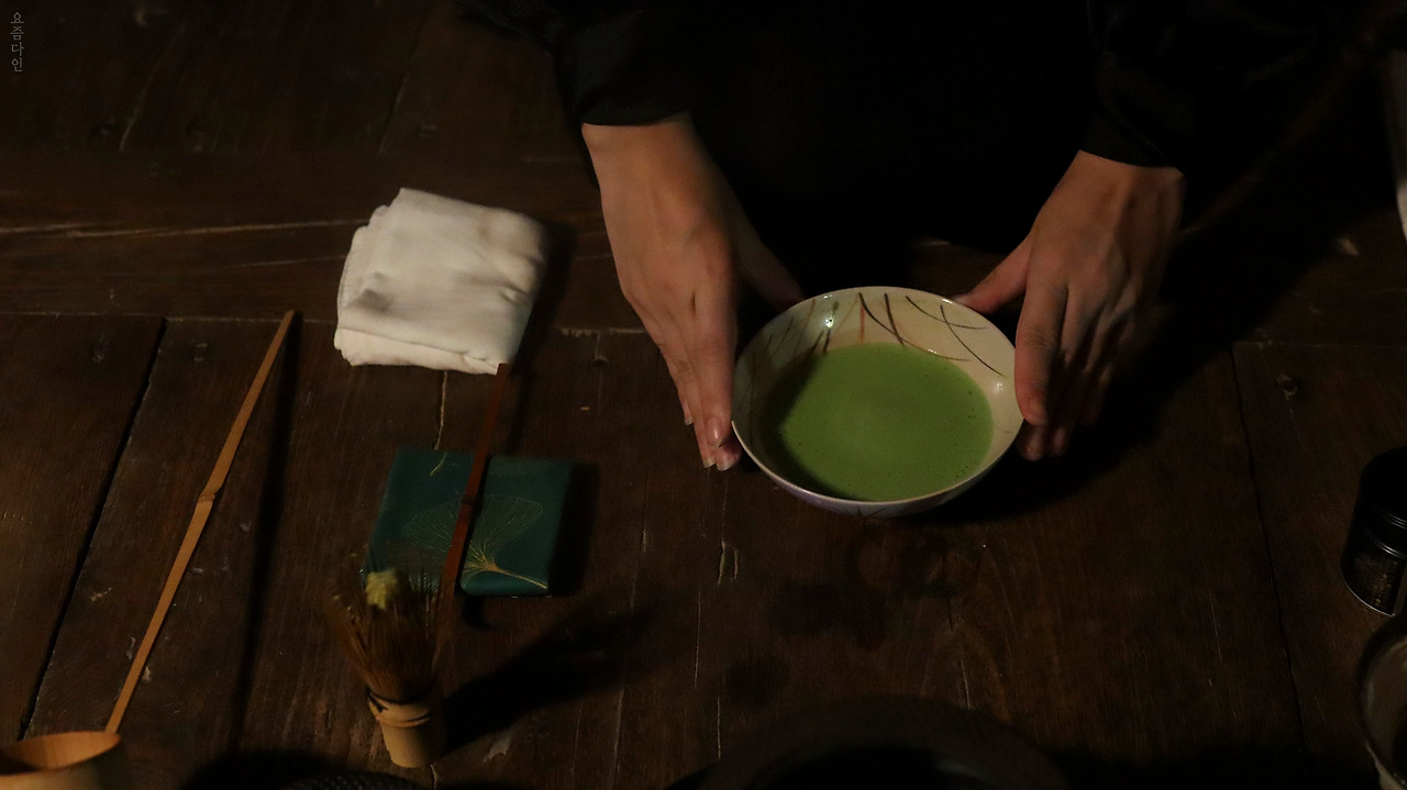 낯선 아침 공기에 피로를 잊고 정신을 차립니다. 느긋하게 일어나자고 얘기했지만 막상 아침이 되니 다들 눈을 반짝이며 부지런히 찻자리를 준비하기 시작합니다. 어둑한 가운데 물을 끓여 보온병에 따르고 말차를 체 쳐서 차통에 담는 시간.