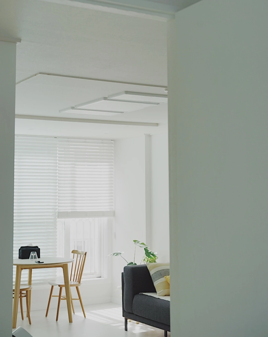 그래서 전체적인 집의 톤을 화이트'로 결정했다. 하얀 도화지처럼 집의 바탕을 세팅해두면 어떤 가구나 소품, 패브릭을 배치하느냐에 따라 쉽게 분위기를 바꿀 수 있다. 흰색은 내가 가장 좋아하면서도 절대 질리지 않는 컬러기도 하다. 밤보다는 낮을, 밝은 공간을 좋아하는 우리의 취향을 만족하면서도 유행을 타지 않아 좋다.