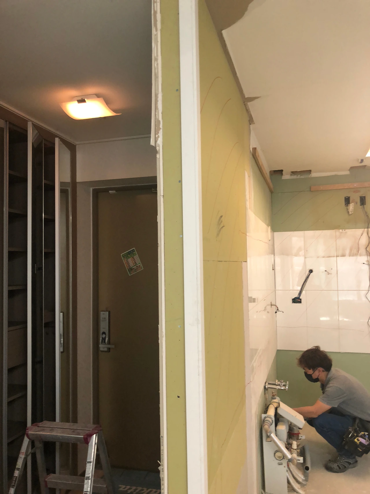 공사가 시작되고 나서 첫 주는 퇴근 후 매일매일 공사 현장을 방문했다. 혹시나 도움이 될까 싶어 생수도 이만큼 사두고, 오전의 공사 현장에서 문제가 있었던 건 바로바로 인테리어 업체 사장님께 알렸다. 이렇게 했던 것이 천만다행이었던 것이, 화장실 욕실 바닥 타일이 완전 삐뚤빼뚤하게 붙여져 있던 큰 사고가 발생했었는데 그 날 알리지 않았더라면 복구가 어려울 뻔했다. 근심과 걱정을 내려놓을 수 없었던 혼돈의 첫 주가 지나가고, 나머지 일주일 동안은 남편이 여름휴가를 헌납하고 공사 현장을 지켰다. 아무리 턴키로 진행한다고 하더라도, 셀프 인테리어로 하는 것 같은 책임감을 가지고 현장을 자주 가보는 건 중요한 일이다.