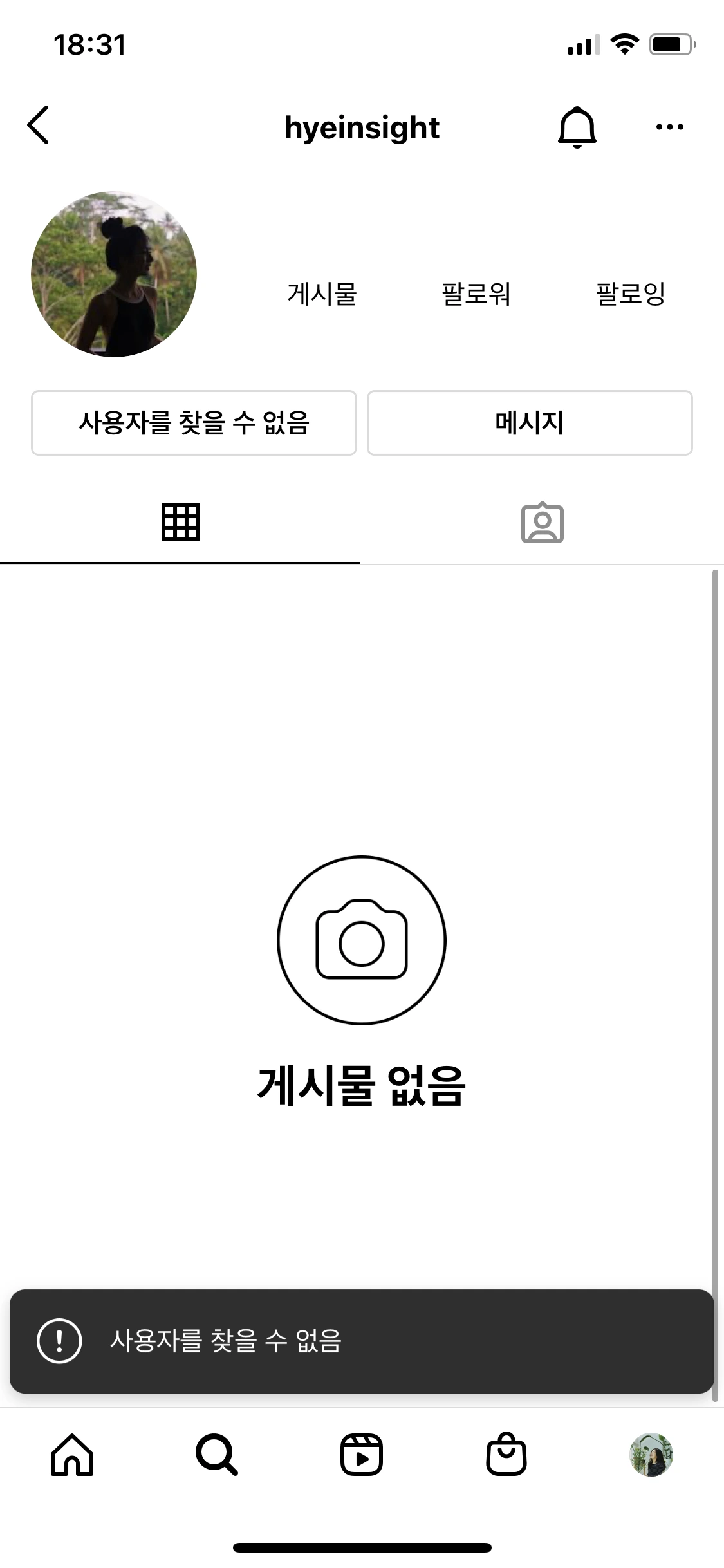 그 주에는 독후감 말고는 올린 게시물이 없었고, 스토리에도 Guess my MBTI! 라는 설문 컨텐츠 하나 뿐이었다. 모든 기기에서 해당 계정이 로그아웃되고 다른 계정으로 검객하면 ‘사용자를 찾을 수 없음’ 이라고 떴다. 3,000여장이 넘는 나의 기록은 어디로 간 거지?