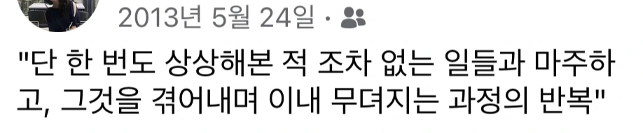 이제 이 말을 고쳐야겠다. 인생은 새로운 경험에 그저 힘 없이 무뎌지는 것이 아니라 나만의 균형점을 찾아가는 과정이라고. 물론 그 모든 것은 나 혼자 해야 한다. 머리서기처럼 누구도 도와줄 수 없다. 하지만 무뎌진다는 표현 대신 균형점이란 단어가 주는 어떤 위안이 있다. 외로운 주체의 무게를 어디 한 번 감당해보자 싶은 용기를 준다.