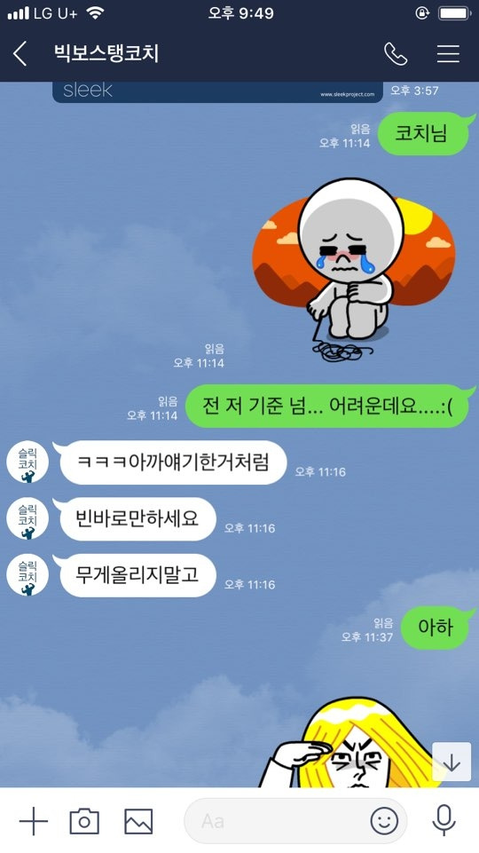이제 슬릭 프로젝트 기간이 끝났으니 하는 말이지만, 운동 결정할 때는 무슨 일이 있어서도 커리큘럼을 꼼꼼하게 확인하고 나를 정확히 이해하고 신청하는 것을 추천한다. 나처럼 아무 생각 없이 제일 강도 높은 수업을 결정하는 순간 당신의 멘탈과 몸의 주도권은 운동하는 시간 동안 사라질 수 있다... (코치님들이 우쭈쭈를 엄청 잘해주신다. 또 우쭈쭈 받으러 가야겠다.)