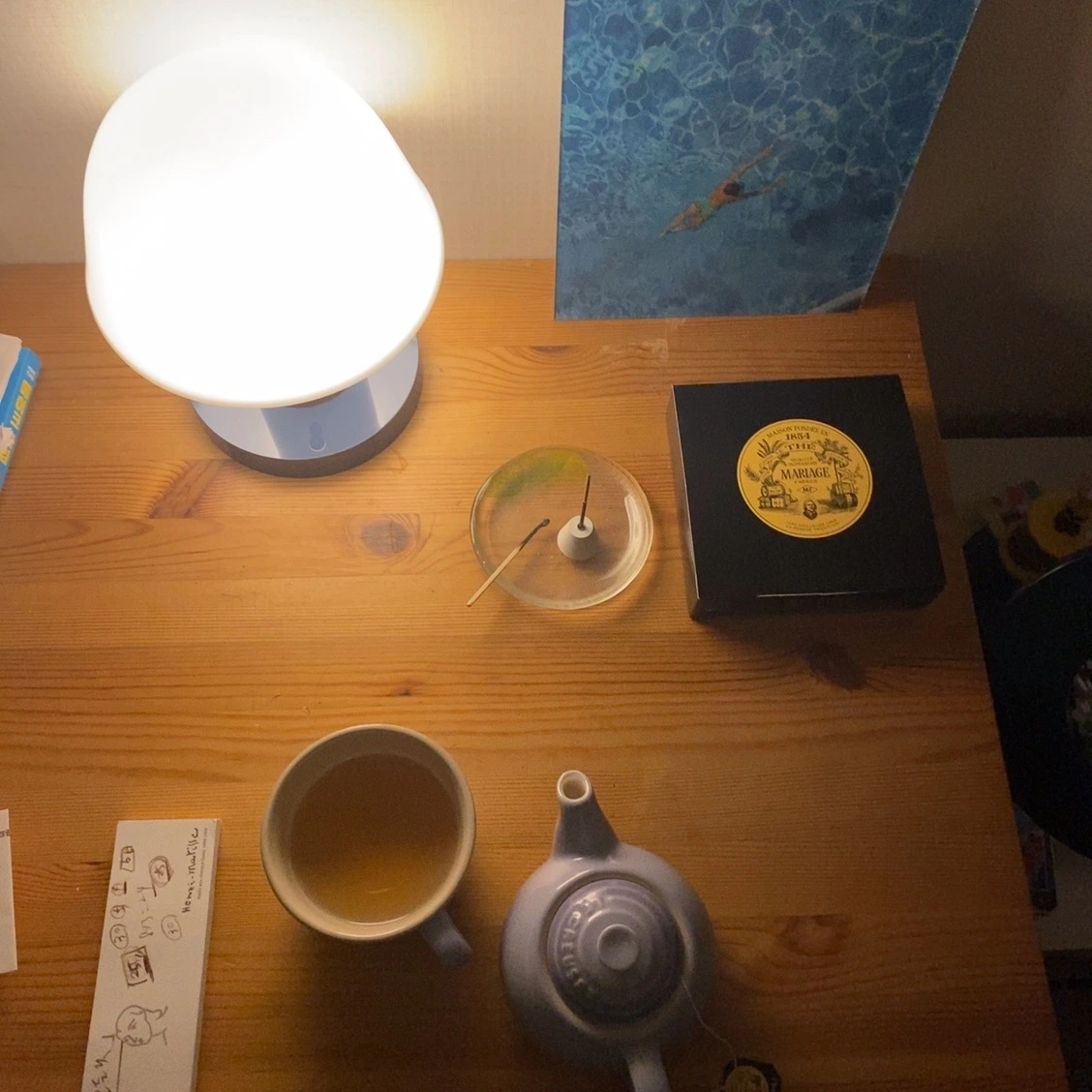아이와 함께 주거할 땐 가능한 디자인에 우선순위를 두는 것보다 내구성이 튼실한 가성비가 좋은 물품을 사야겠다는 생각이 들었다. 그런 생각을 할 찰나, 내 마음을 달래준 대체할 조명이 때마침 오늘 집으로 배송되었다. 혼자만의 시간을 통해 향이 짙어 사놓고 못썼던 인센스 스틱, 마르코 폴로의 마리아쥬 홍차까지.. 오늘 밤 홀로인 날을 즐기며 나 자신에게 사치스러운 시간을 부렸다. 너무 행복한 이 밤을 잊고 싶지 않다. 행복의 기쁨은 멀리 있는 것이 아니었구나. 내가 주체적으로 선택할 수 있는 행복이라는 것을 오늘 배운다. 나라는 사람은 '혼자만의 시간'이 채워져야만 평점심을 되찾고, 타인에 대한 마음을 열 수 있는 사람이라는 점도.