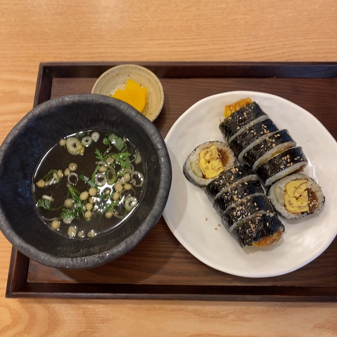 오늘 나를 위한 작은 성찬을 준비했다. 운동 후, 사무실로 복귀해야 하니 시간을 아끼며 간단히 식사할 수 있는 샐러드로 점심을 챙긴다. 이날만은 보상이 필요했다. 박고지 김밥으로. 포장을 할까 싶다가 그 자리에서 한 줄을 다 먹어버렸다. 10등분으로 나눠진 김밥을 먹으면서, 처음 입에 들어가는 김밥 1개와... 두 번째, 세 번째 이어 마지막으로 들어가는 김밥의 맛을 음미해봤다. 마치 처음 수업을 들었던 그 마음가짐과 동일하게 열개의 김밥의 맛은 제각각 달랐다. 첫맛은 아주 신선하고 자극적이고, 두세 번째는 익숙한 맛.. 끝 맛은 깔끔하고 한 접시에 깔린 김밥을 모두 잘 먹었다는 포만감까지...